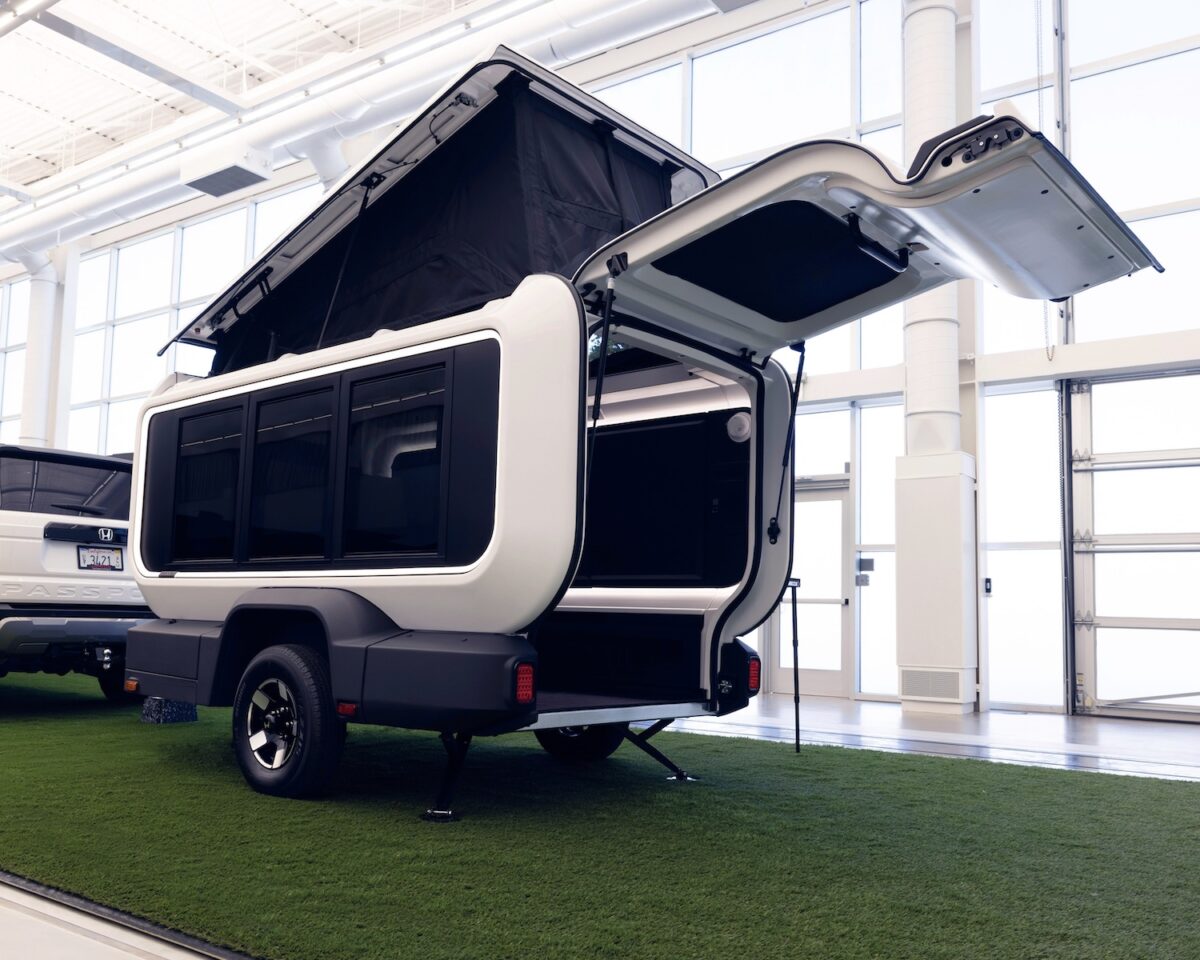 The sleeping arrangements have also remained front of mind, with space for a queen-size mattress inside, and a roof tent up top to deliver space for four guests– all without turning the trailer into a bulky tow load. The Base Station feels like Honda’s pitch for a more accessible outdoors experience, with a future-forward design, modular options, and a tow weight that plays nicely with the cars people actually drive.