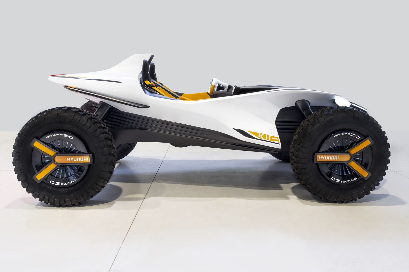 Named the Kite, the details for the vehicle are scarce, although it does include LED headlights, dynamic bodywork and a huge tail light. The body features partially exposed suspension along with 4 motors located in the wheels with off-road tires, giving it a truly futuristic amphibious look.