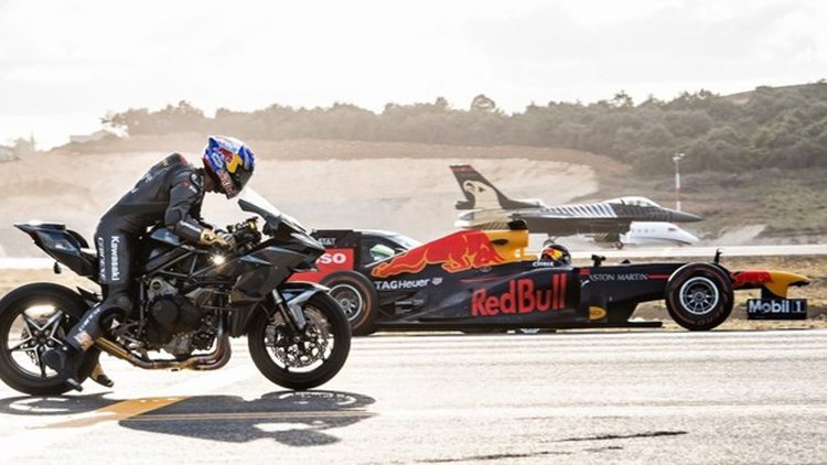 The bike was victorious in lightning quick fashion clocking in at 9.43 seconds to the quarter-mile marker, a close 0.04 seconds ahead of the F1 car and followed eagerly by the F16. Kenan Sofuoฤlu, the rider at the helm of the superbike, has only just recently retired from motorcycle racing after 15 years and five world championship wins.