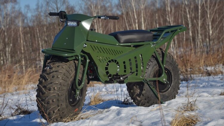 Packing a 210cc engine with a top speed of 22 MPH (~35km/h), the 2ร2 motorcycle is quite capable when it comes to off-roading. In addition to being equipped for the old rocky dirt roads and northern tundras (Iโm assuming), the tyres apparently allows it to float on water.