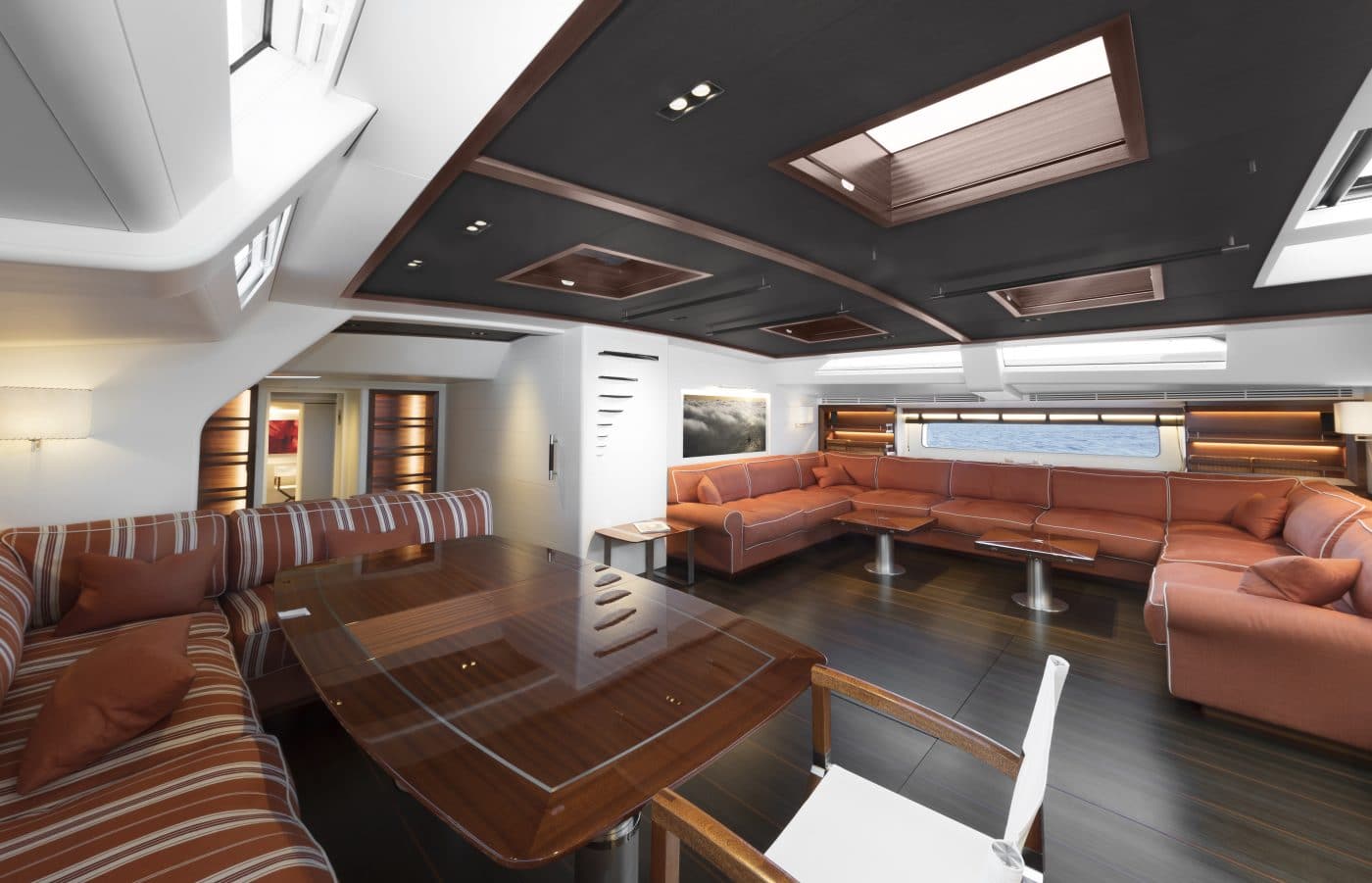 The all-carbon MY SONG, designed by Reichel/Pugh Architects and launched in 2017, featured interchangeable mainsails for cruising or racing with accommodation for six to eight guests and a spectacular deck saloon.