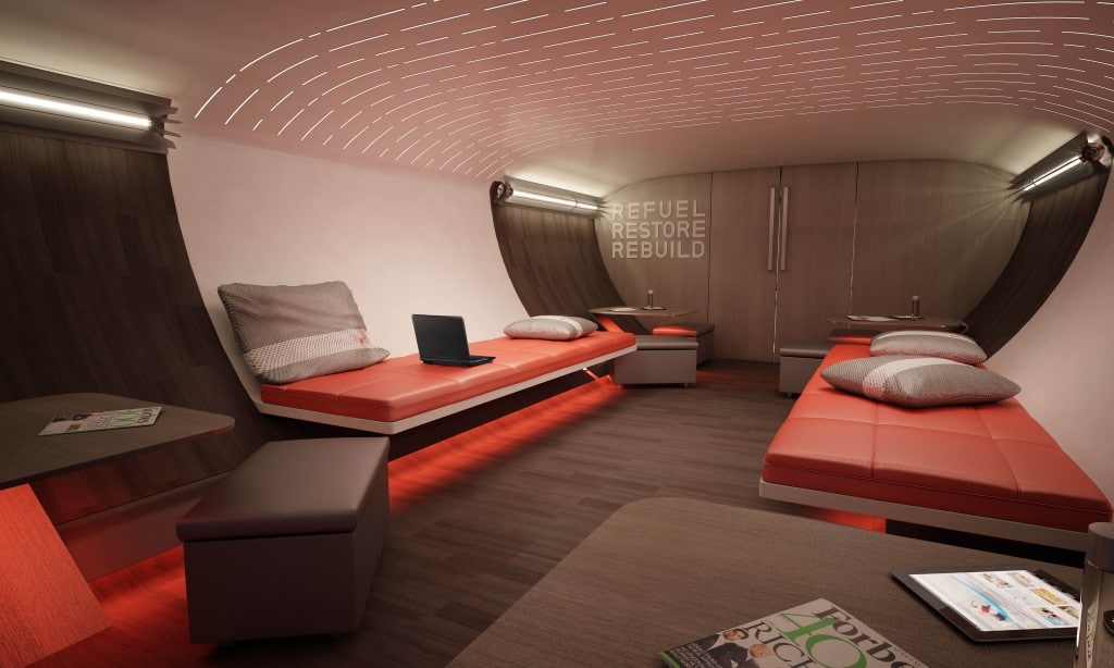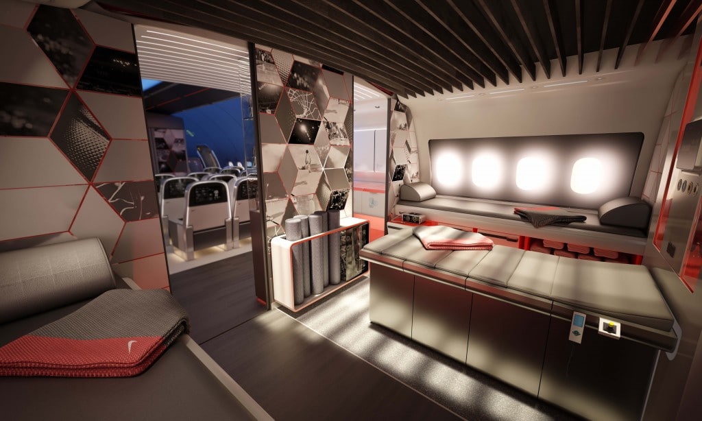 Taking these interviews directly into consideration, Nike and Teague were able to conceive of the perfect custom-made cabin tailored exactly to the needs of travelling pro athletes. According to the official site description, design efforts have focused on four key aspects of โperformance innovationโ (which has also informed the proposed features):
