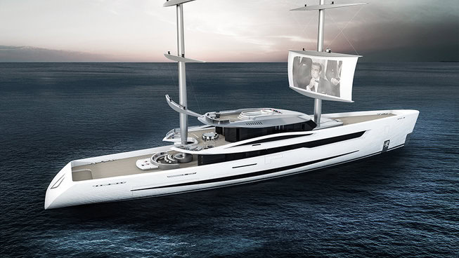 Earlier this week we featured a piece about a superyacht with a cascading waterfall between two pools. Today weโll raise you one better with the sailing yacht concept โVela,โ a 262-foot behemoth that comes with the ability to project films onto the huge sails.
