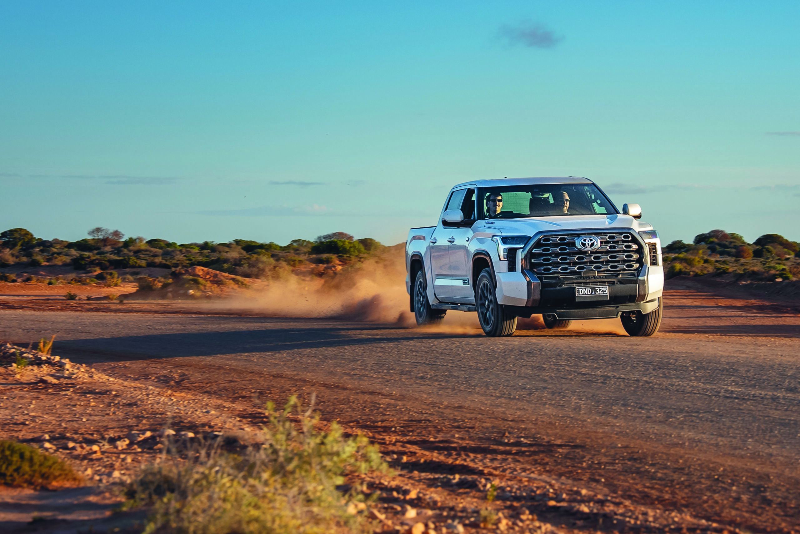 We’re venturing across the Nullarbor in Camry hybrids and the latest addition to the Tundra line-up, a $172,990 behemoth that relishes wide-open spaces. Fortunately, we’re not short on them.