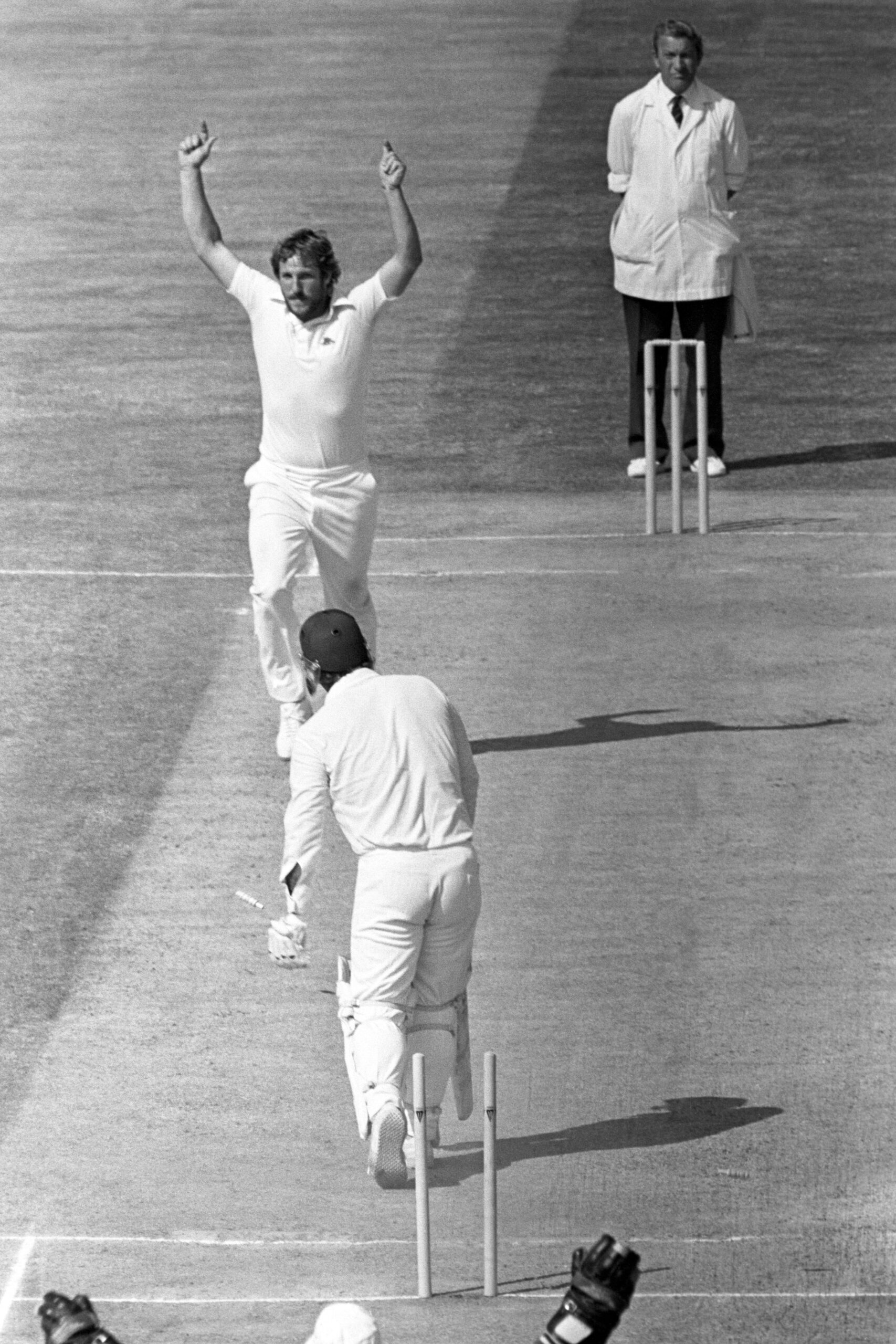 After Hogg lost his balance while bowling and fell at Bothamโs feet.
