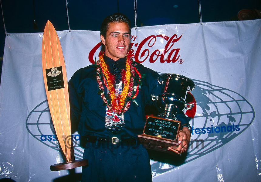 Going into the 1995 Pipe Masters, Machado was placed second in the rankings and Slater was third. Front runner Sunny Garcia choked in the second round, leaving the gate wide open for the two young guns. Pipeline was absolutely heaving, sucking bone dry off the reef and providing plenty of shady tubes. Machado and Slater met each other in the semi-final and stakes couldnโt have been higher: if Machado won the heat, he would be crowned world champion on points โ if Slater won, he would advance and take home the world title if he won the final.