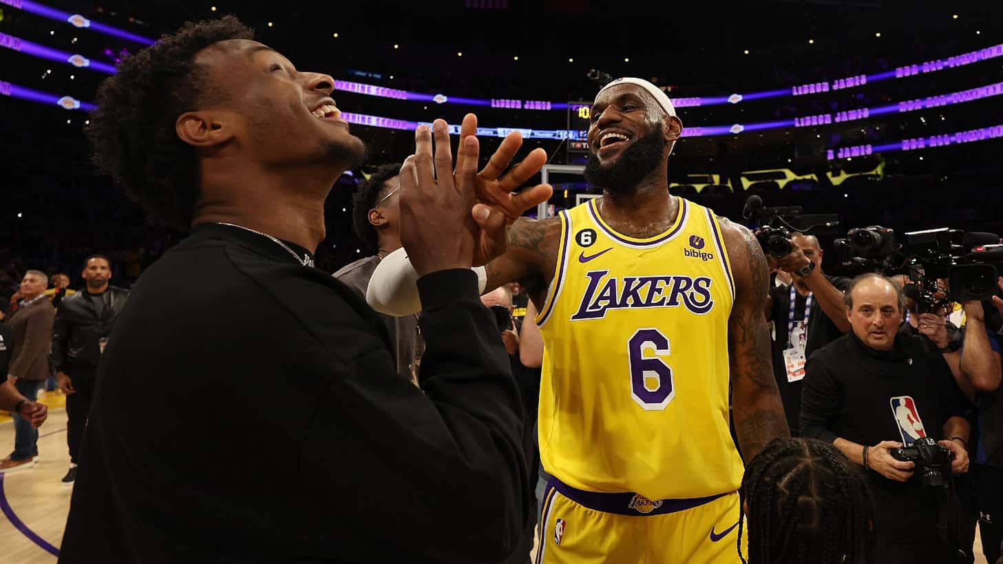 โIn the history of the NBA, thereโs never been a father and a son that have shared an NBA basketball court and that feels like something that could be magical,โ said Rob Pelinka, General Manager of the Los Angeles Lakers.