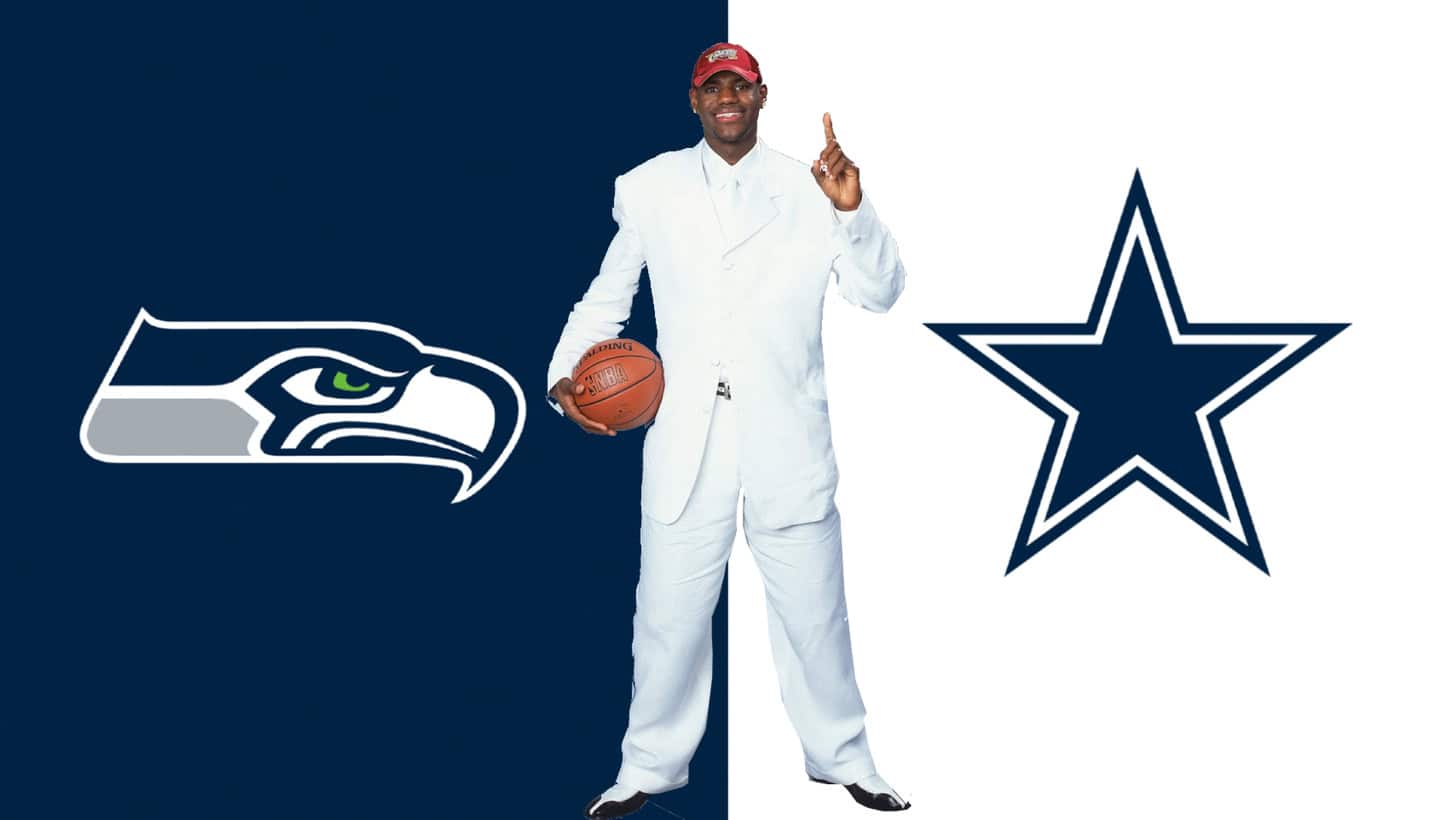 As you may recall, that was the year that the NBA experienced its 161-day lockout from July into December that delayed the 2011โ12 regular season. It also reduced the regular season from 82 games to just 66 that year. Both the Seattle Seahawks and the Dallas Cowboys wasted absolutely no time in jumping at the possibility of getting this absolute unit on their team. James was so flattered by this that he has these contracts framed in his office as well as the jerseys that were made for him as part of their pitch.