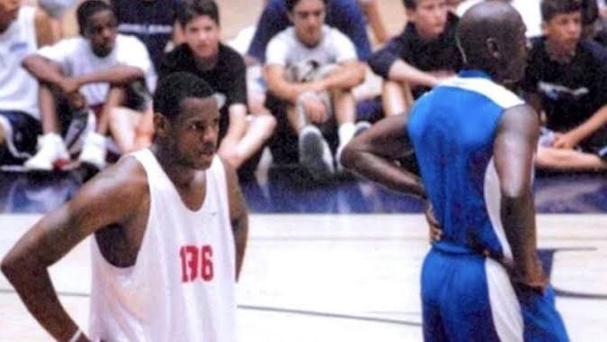 James was only 16. Despite being the best high school player in the country (ever), listening to Maverick Carter on the In The Zone podcast with Chris Brousard would suggest that LeBron didnโt really get much of a chance to play here. He did, however, get some words of encouragement from his idol, as well as witness him hit an on-brand fadeaway game-winner where he screamed out, โThatโs why they pay me $33 million to do this.โ