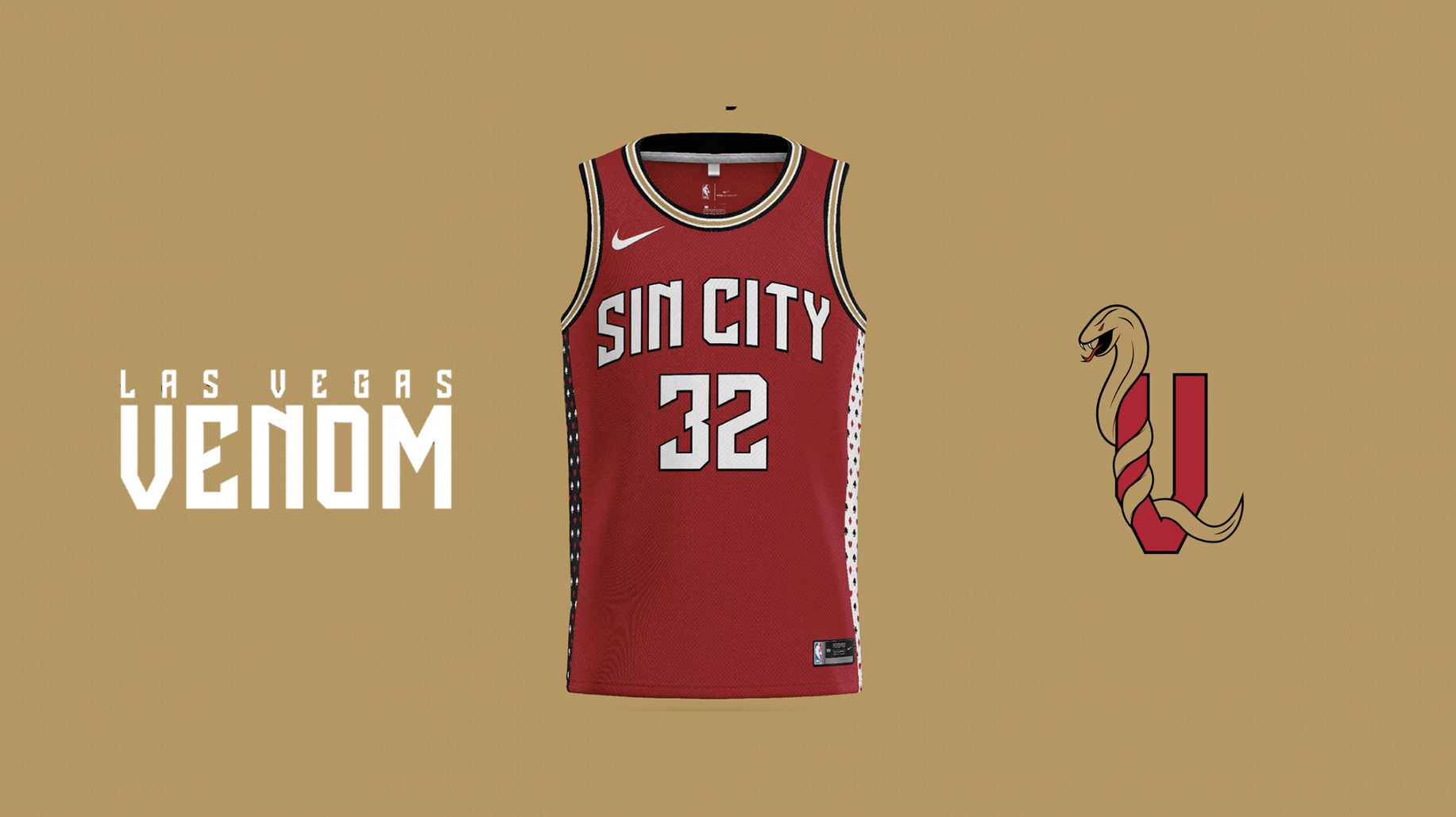 Itโs exciting to think about what a Vegas team might look like. While many have guessed that theyโd go for a gambling-related name โ whether it be the Jacks, the Dealers, etc โ that just comes across as so obvious and borderline cringe. The one that we like the most so far was a concept created by Ryan Meils called the Las Vegas Venom, with desert colours, snakeskin patterns, and a โSin Cityโ City Edition jersey.