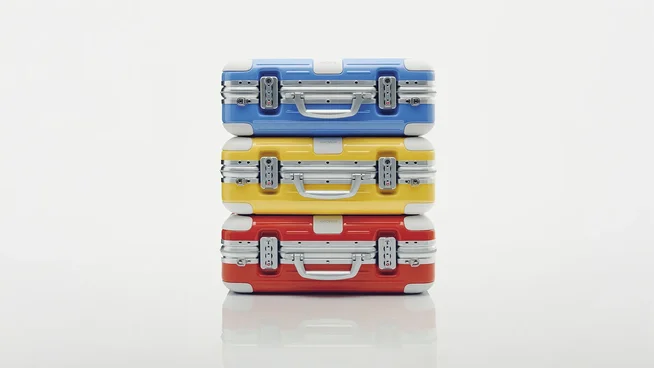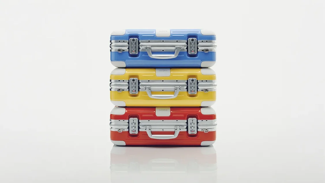 - RIMOWA’s limited-edition Holiday Case channels the golden age of travel with its vibrant primary colours and white accents, reminiscent of vintage travel posters that adorned agency windows.