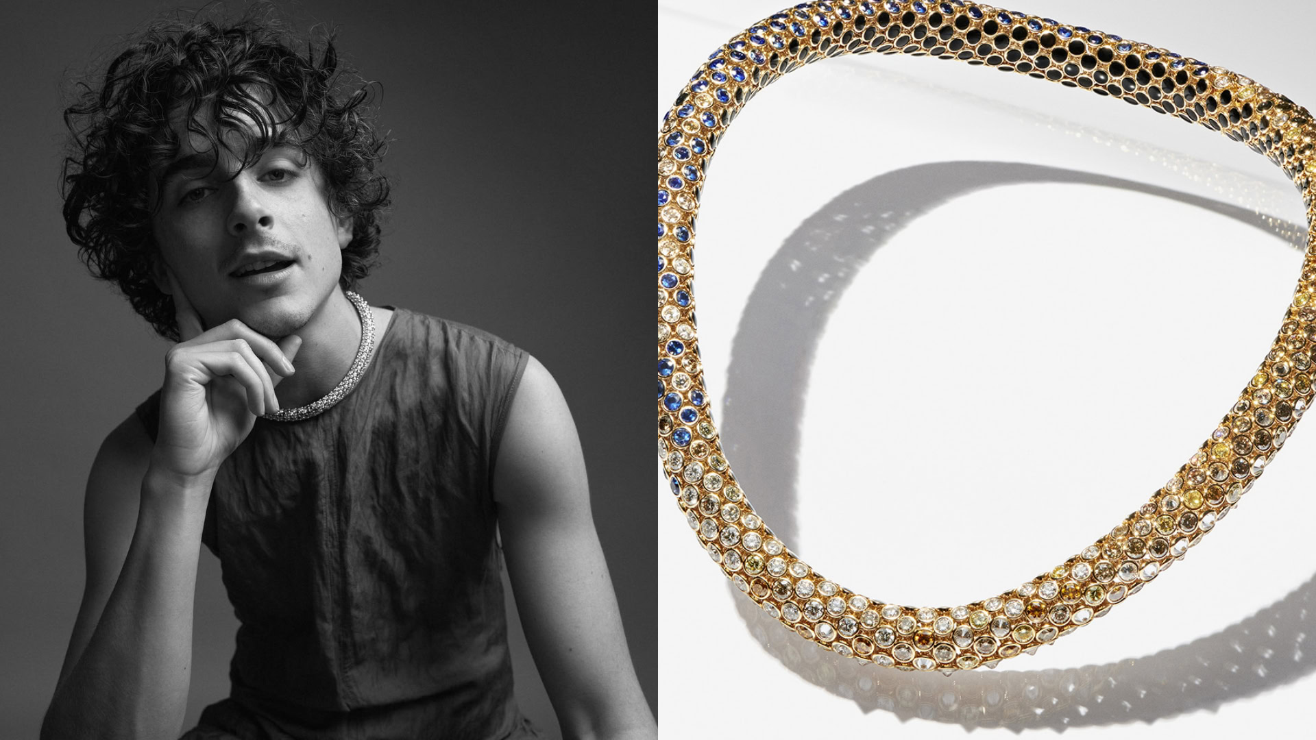 Bling enthusiasts, on the other hand, had their smartphones trained firmly on Chalamet’s neckwear: a modular design encrusted with 900 gemstones which marks the latest collaboration between the actor and famed Maison.
