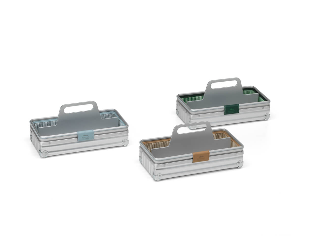 The two key pieces, which โmerge industrial precision with domestic ease,โ include a wheelable stool echoing RIMOWAโs traditional mobile pieces. The toolbox, on the other hand, is directly inspired by Vitraโs style, with its original silhouette designed by Arik Levy in 2010.