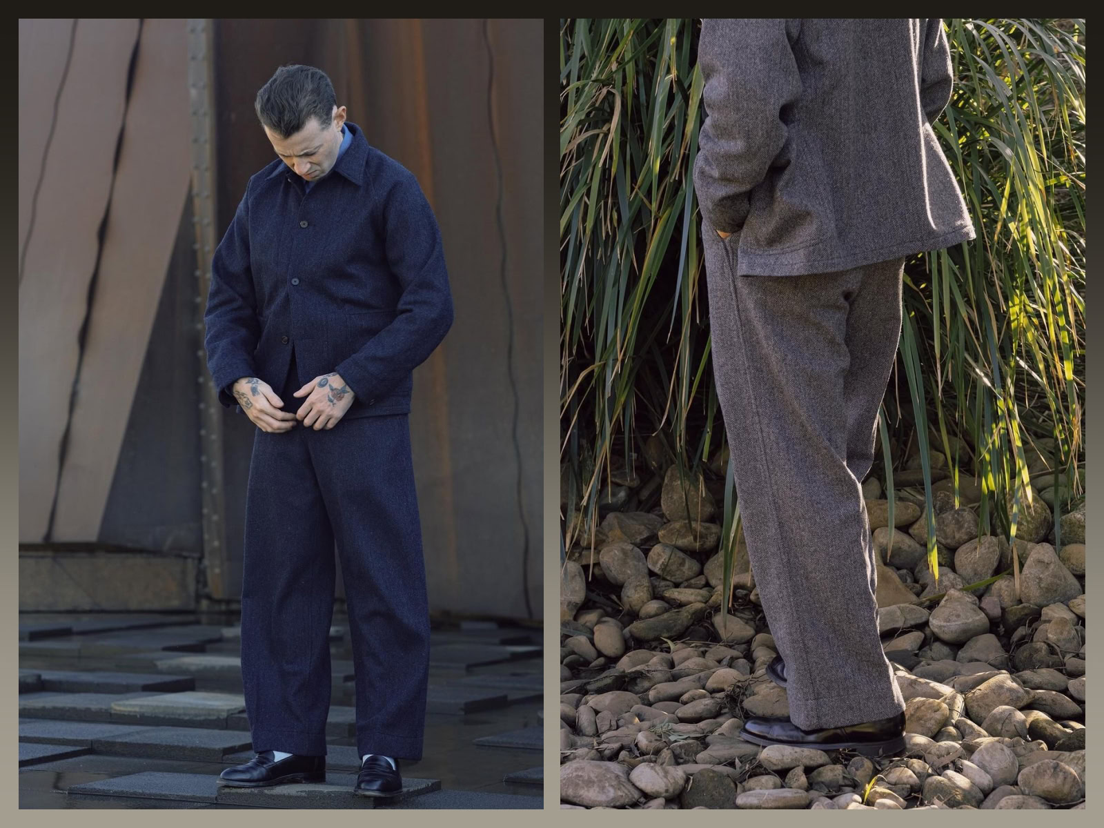 A fixture of Melbourneโs hugely influential street style scene, Zhu has brought all of his inspirations โ ranging from Americana to mid-century industrial design โ to the look of Lavoro. Thatโs best demonstrated in pieces like the โCoverallโ jacket ($960) or work trouser ($590); separates Ha and Zhu actually recommend buying in an identical fabric, so as to achieve a timeless uniform aesthetic.