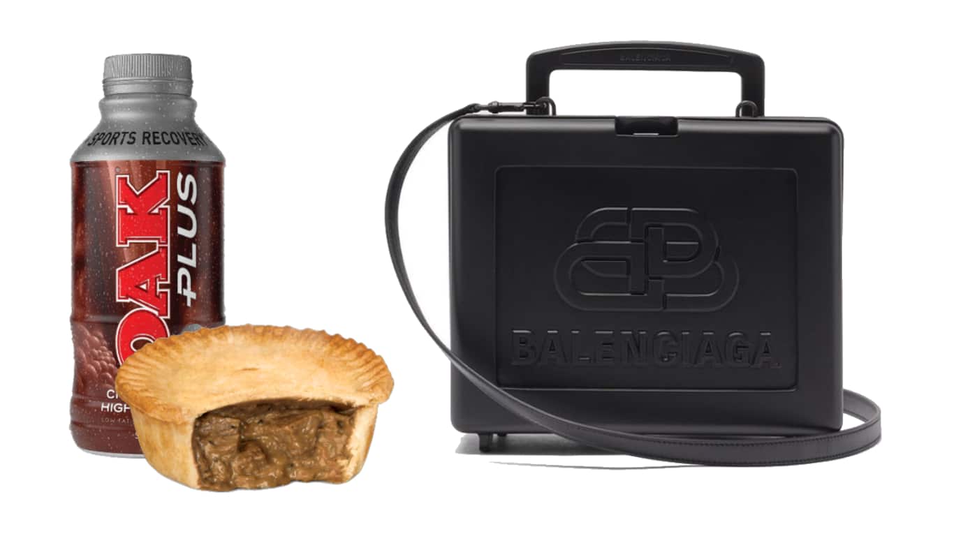 Monday. 11:12 AM. Pretty much quarter past, which is essentially half past, and as we all know, half past might as well be midday. Tools down, time for a bit of ritual passion. You get ready to start cracking into the time-honoured combo: Fourโn Twenty rat coffin and a carton of Oak chocolate milk. And out from the old flat tray, what do you produce? Is it a basic paper bag stained with grease or is it this elite Balenciaga Lunch Box?