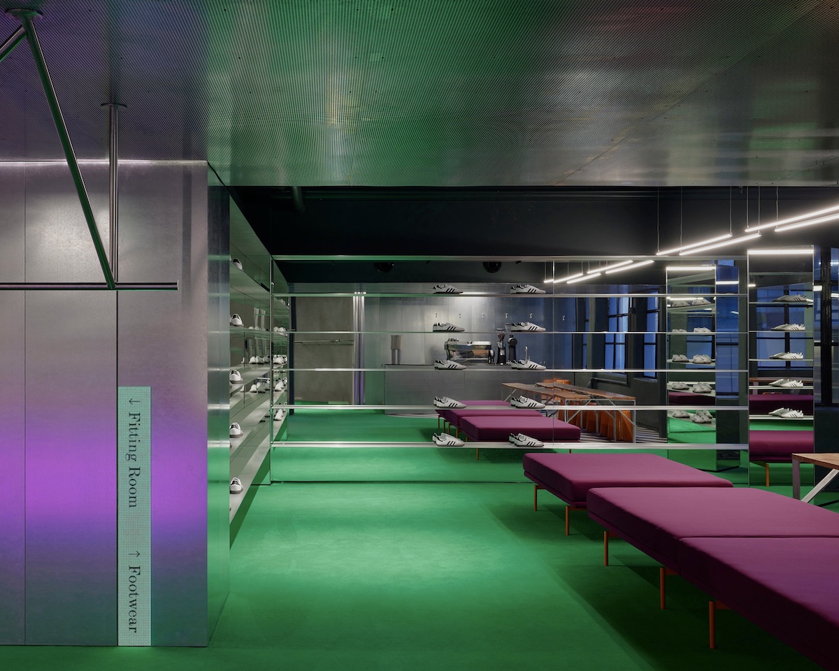 With interiors by London-based Counterfeit Studio, the shop makes a striking impression even before you set foot inside. A bulbous 3D sculpture, visible from street level, recreates Carhartt’s iconic wave-like crescent logo โ setting the stage for a shopping experience that is equal parts apparel, art, and lifestyle.