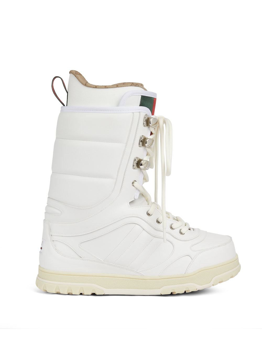 In addition to the outerwear, boots, accessories, and bags, Gucci has teamed up with HEAD for a run of precision-built equipment: skis and poles, snowboards, helmets, and more. All carry the Gucci house codes of web stripe, colour treatments, and premium quality finishings, but thanks to HEADโs excellent reputation, theyโre far from just a pretty face.