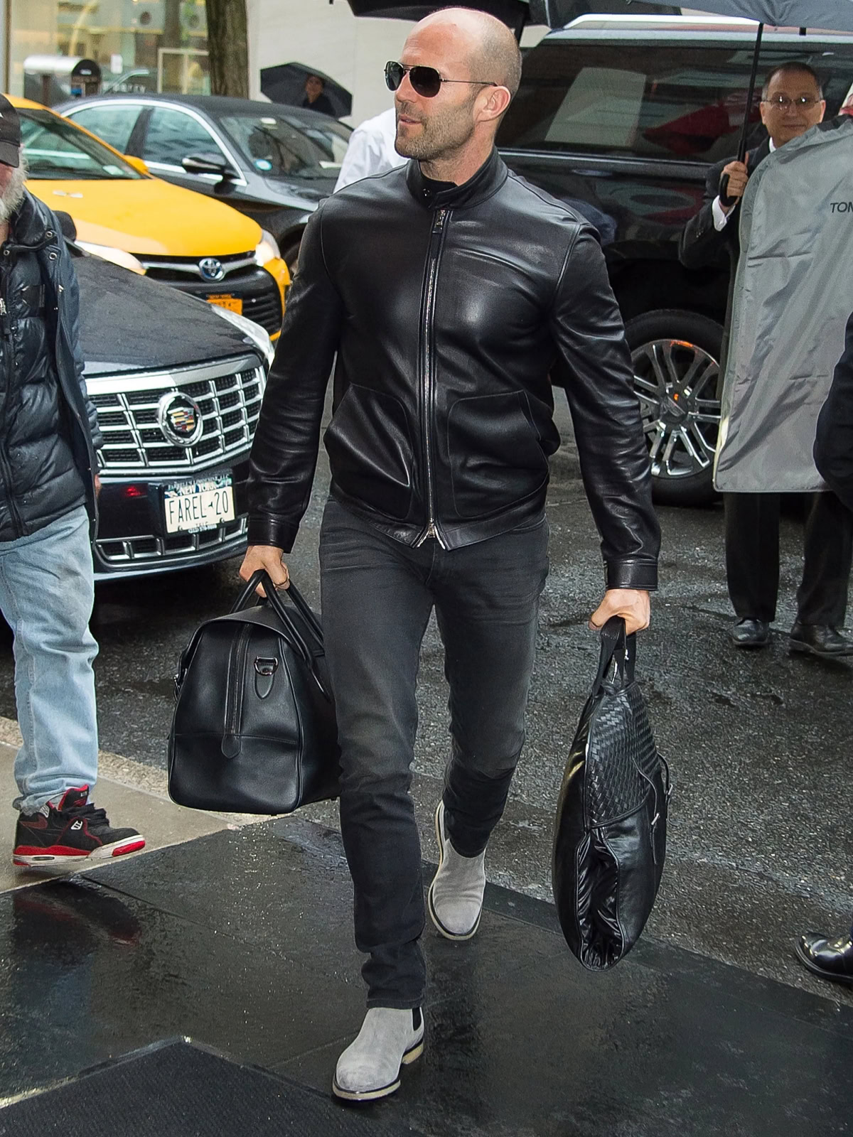 Another staple of the Statham look (and one that has a place in a lot of contemporary male wardrobes) is the leather jacket.