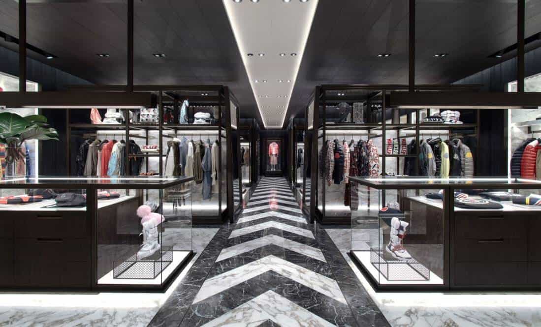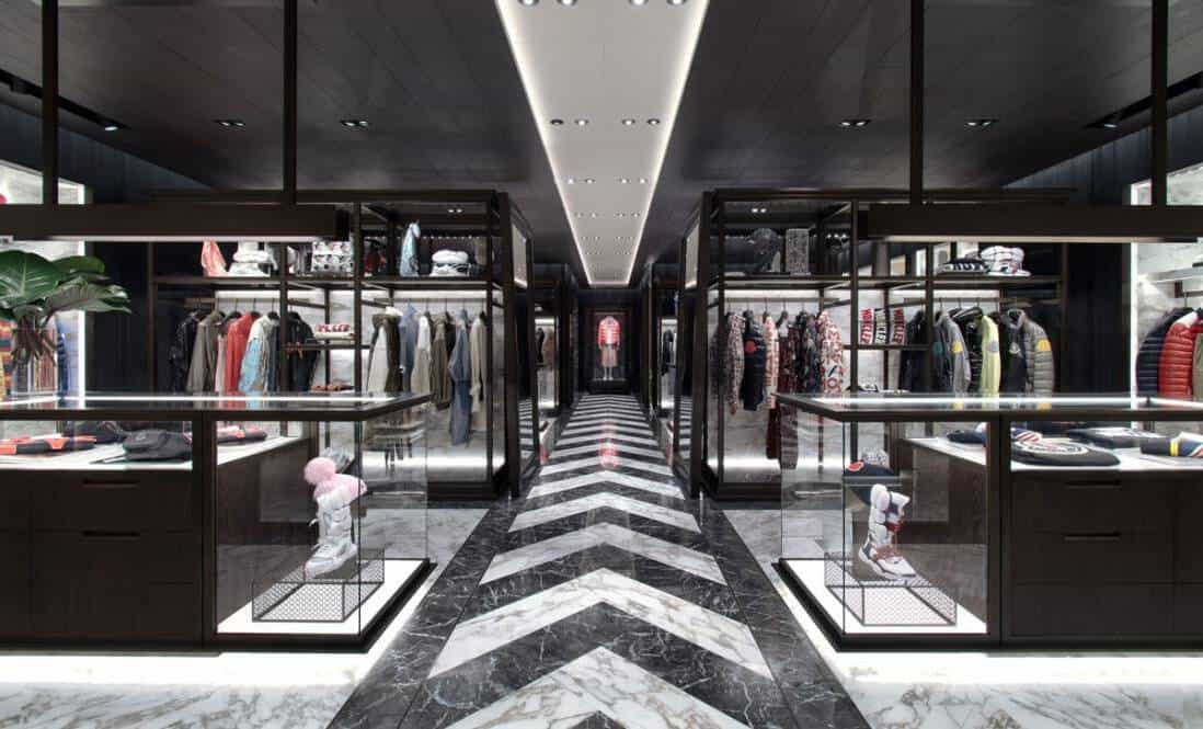 Founded in France with a modern Italian touch, Moncler is continuing to spread influence worldwide since its inception in 1952. With the arrival of Remo Ruffini in 2003, the brand has turned its positioning to the ideal, exclusive winterwear manufacturer. This excellence will be translated to the beauty of the store, which is 130 square meters of opulent Calacatta marble, grey marble, and accents of space-grey brass.