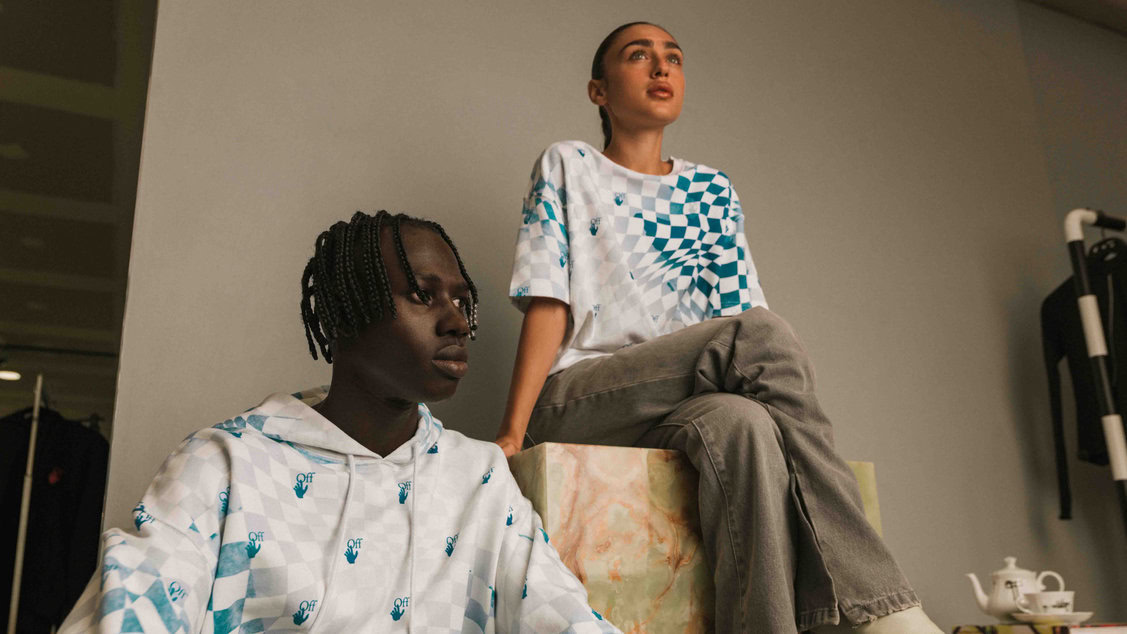 The first of these packages is quintessentially Virgil, featuring the Off-White Optical Pattern splashed liberally across the garments, executed in white and light blue that is as fresh as it is summery. The second package presents a unique Watercolour-inspired spray design, which also boasts invisibly embroidered details that reference Ablohs legacy.