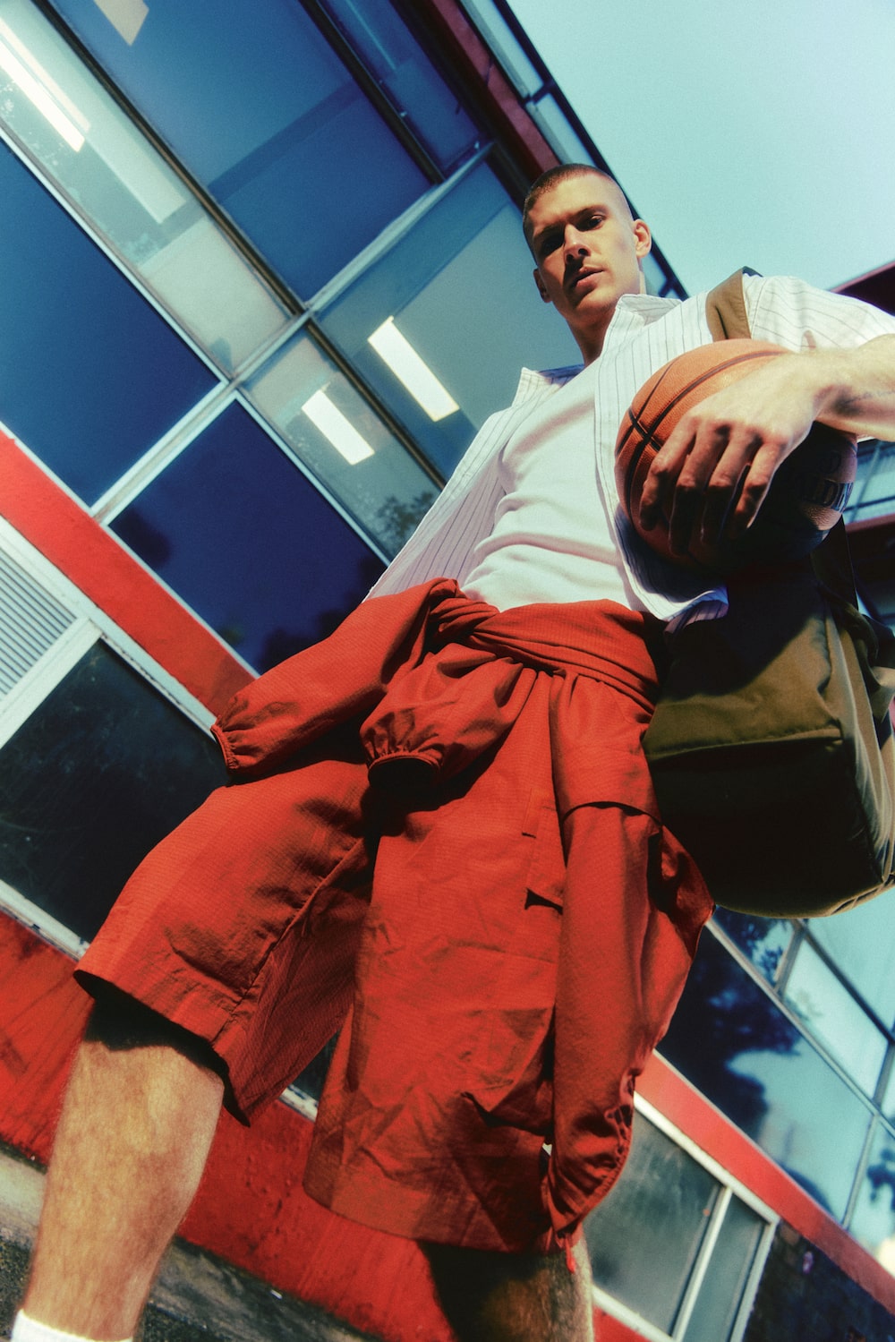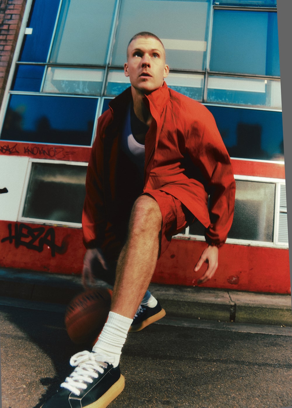 No matter if the mercury is rising from the moment you open your eyes, or youโve got a little social sport on the cards after work, the bright orange Lightweight Stand Jacket and matching Wide Fit Cargo Half Pants (also available in navy and olive) will keep you cool and turn heads.