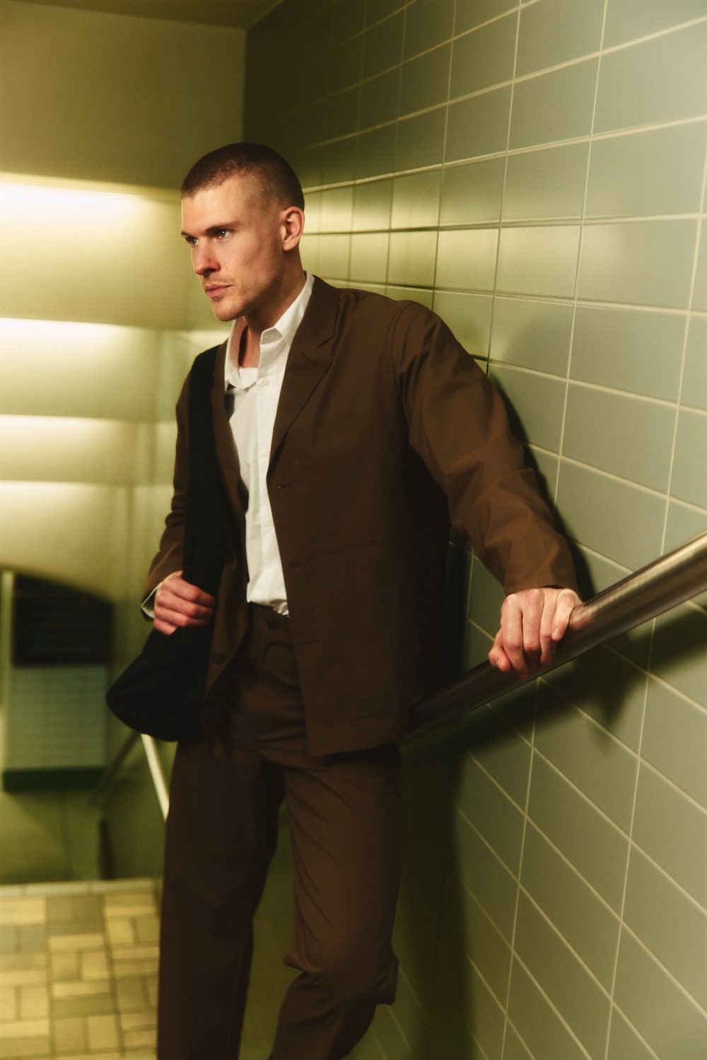 The collection spans the gamut of just about every part of your working week, from the morning commute and day at your desk, to after-work drinks, the weekend cafe visit, and beyond. Thereโs the occasional pop of bright orange, but the rest of the collection remains very much under the radar, presented in shades of navy, olive, grey, beige, and dark green.
