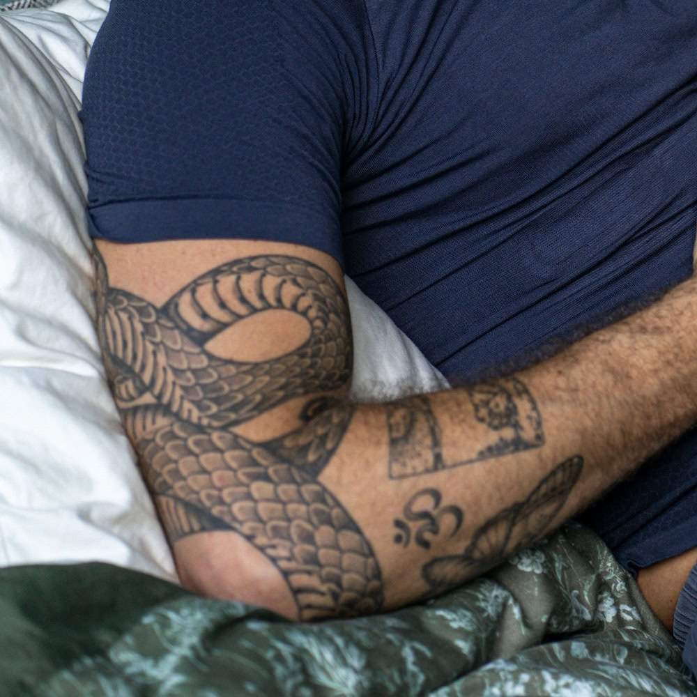 A bicep half-sleeve gives you the best of both worlds: a bold statement tattoo and a decent expanse of untouched skin below the elbow.