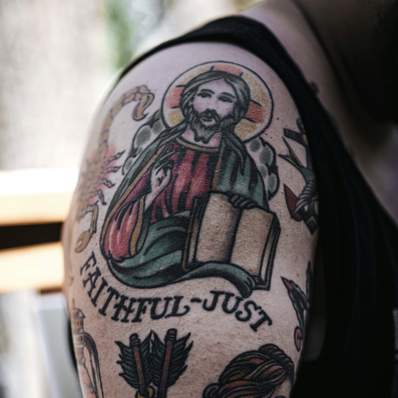 Tattoos of Jesus on the arm are a deeply personal and constant reminder of faith and spiritual connection.