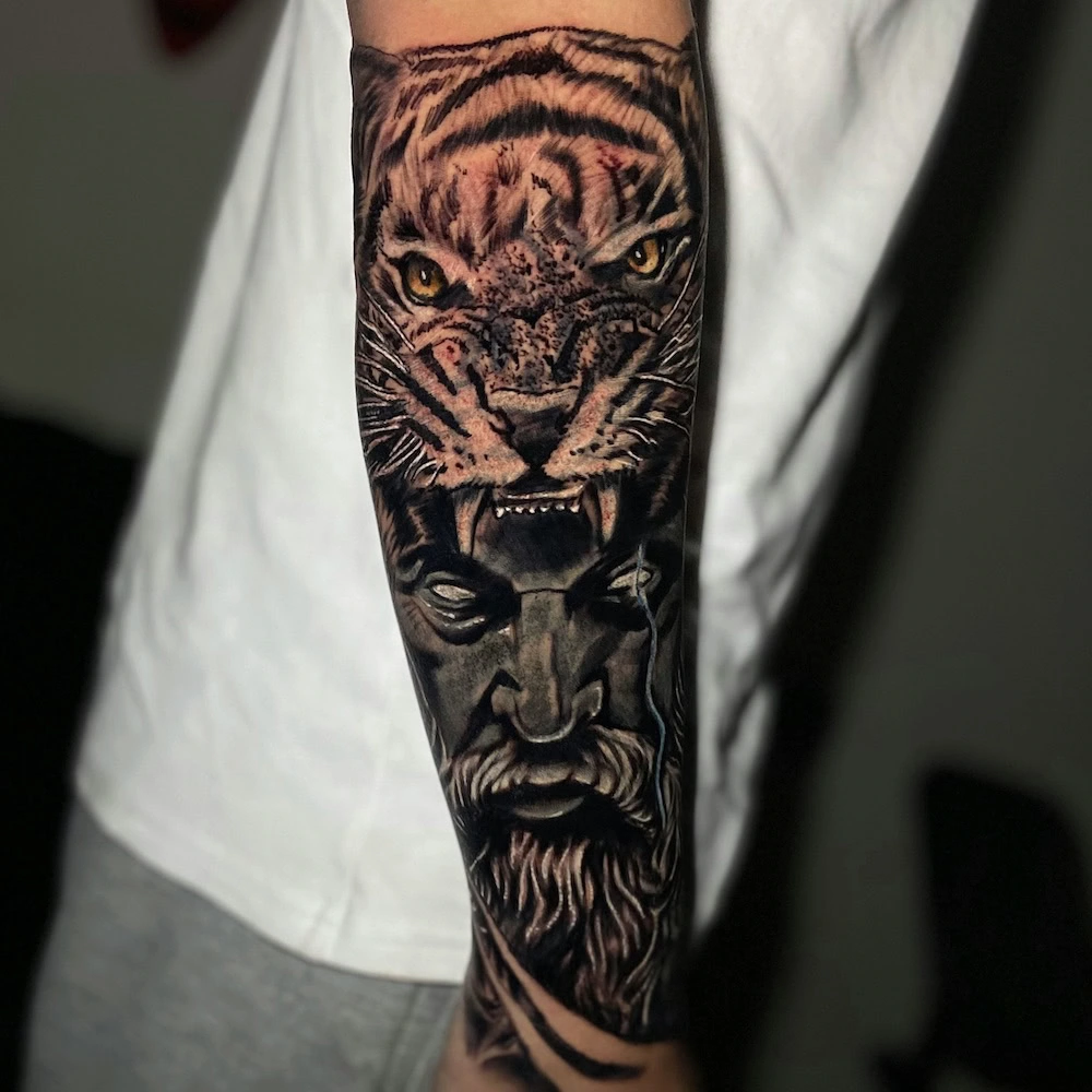 Wild animals for arm tattoos tap into the raw, natural energy these animals represent, like a lionโs strength or the cheetahโs speed.