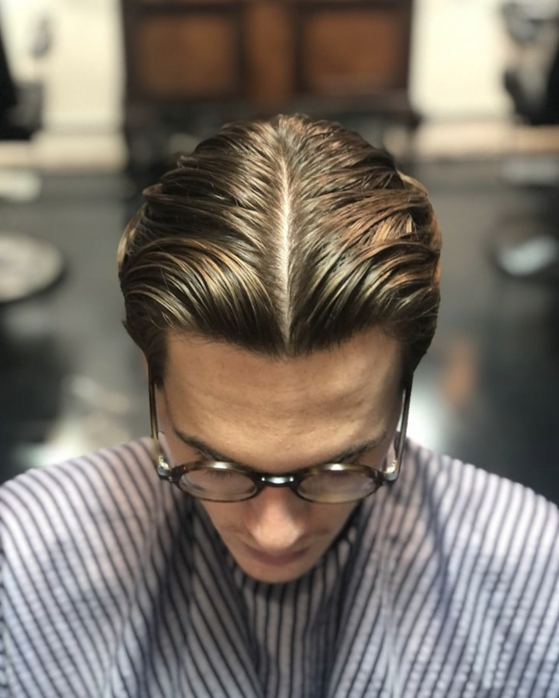 This hairstyle is more suitable for formal occasions with its polished appearance. Itโs quick to style. You need only a little pomade or wax to hold and shine. Just apply the product to damp or dry hair, comb it into place, and youโre good to go!