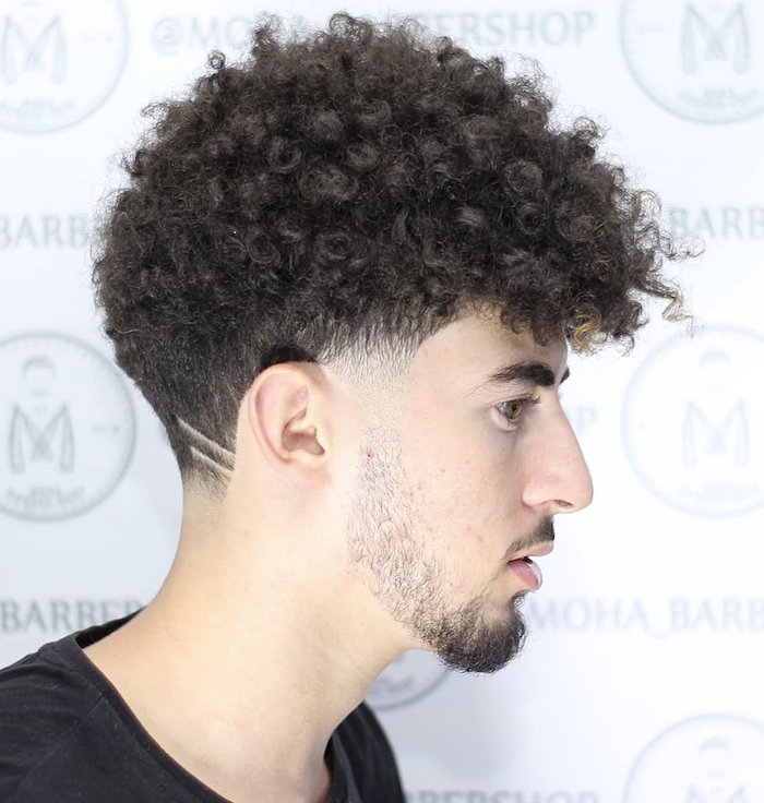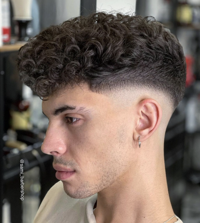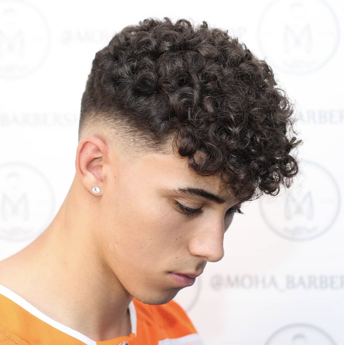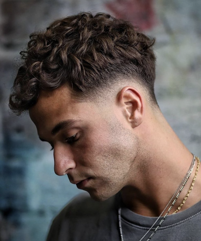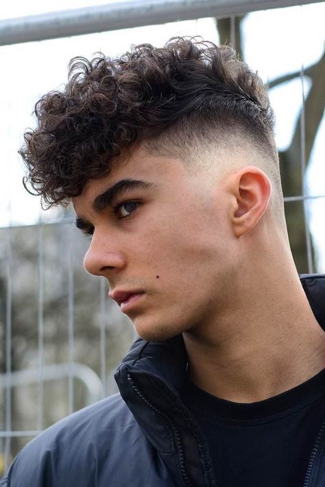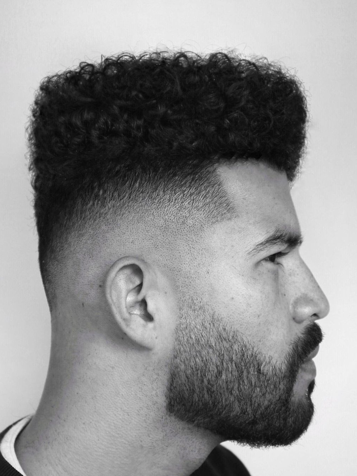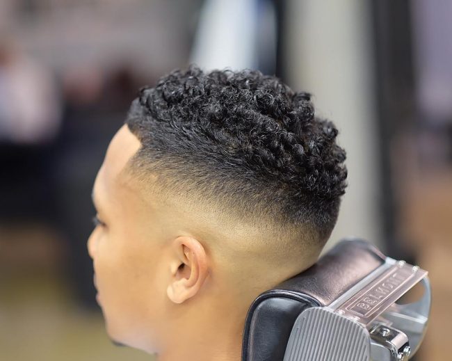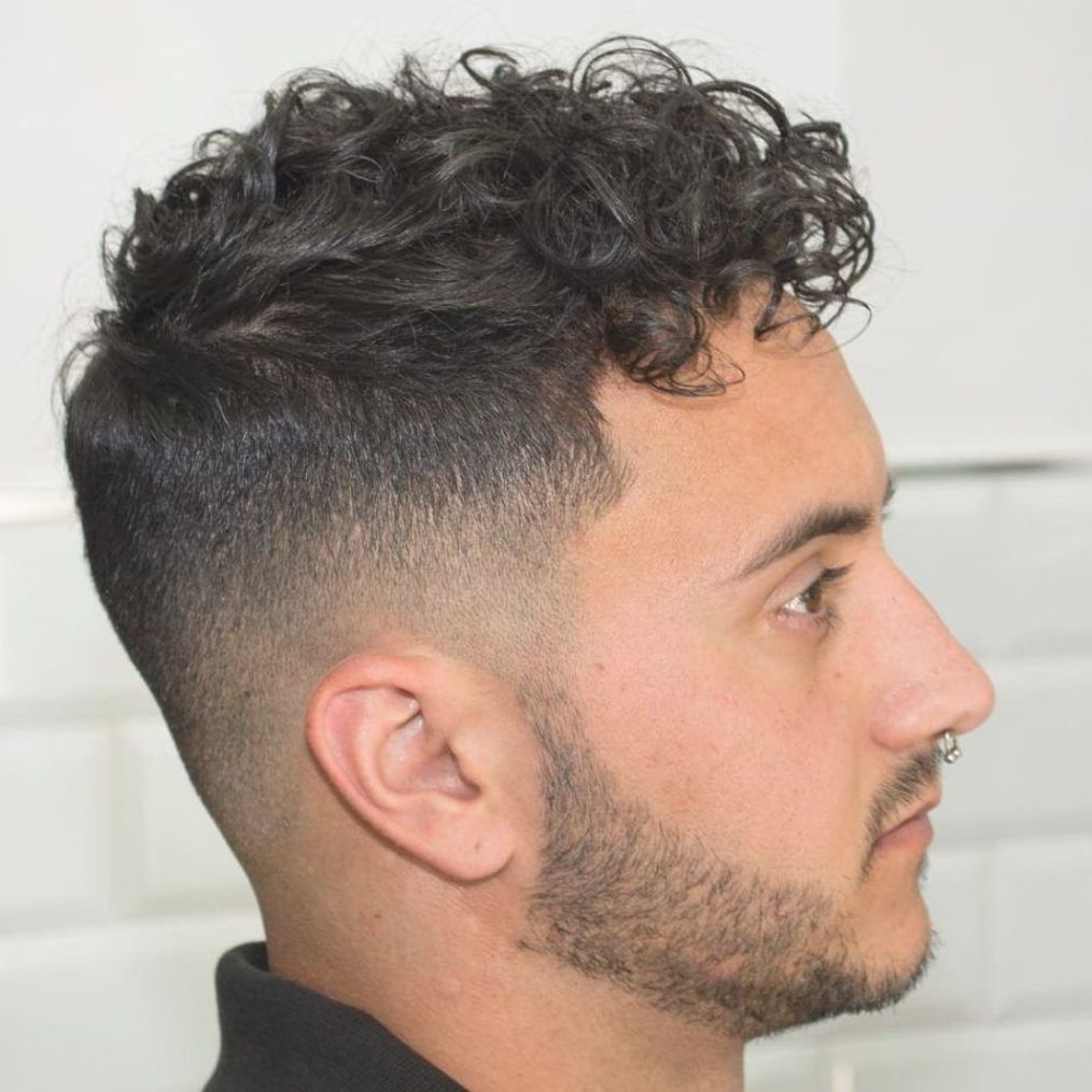 Mix a high fade haircut with curly hair on the top. Any naturally curly or wavy texture can benefit from trying this style. Thereโs a stylish appearance with a flawless blend between the short faded sides and the top.