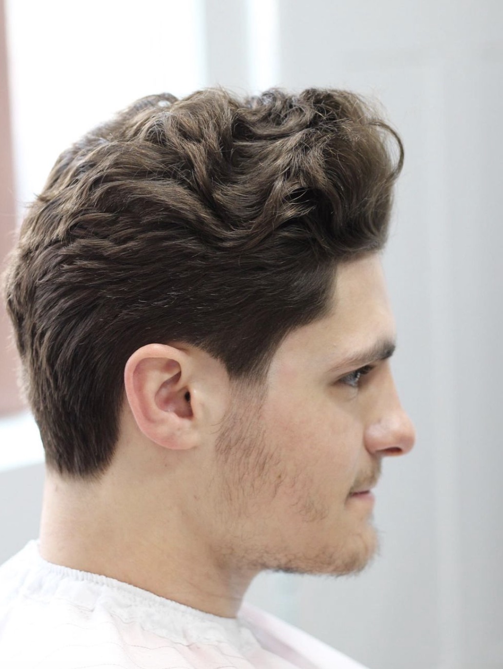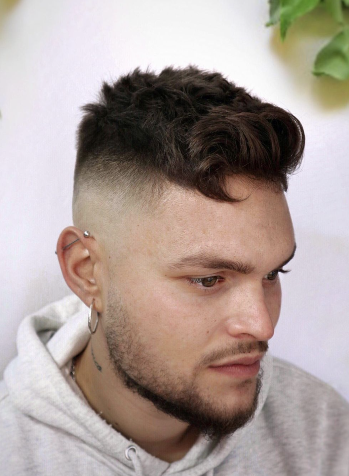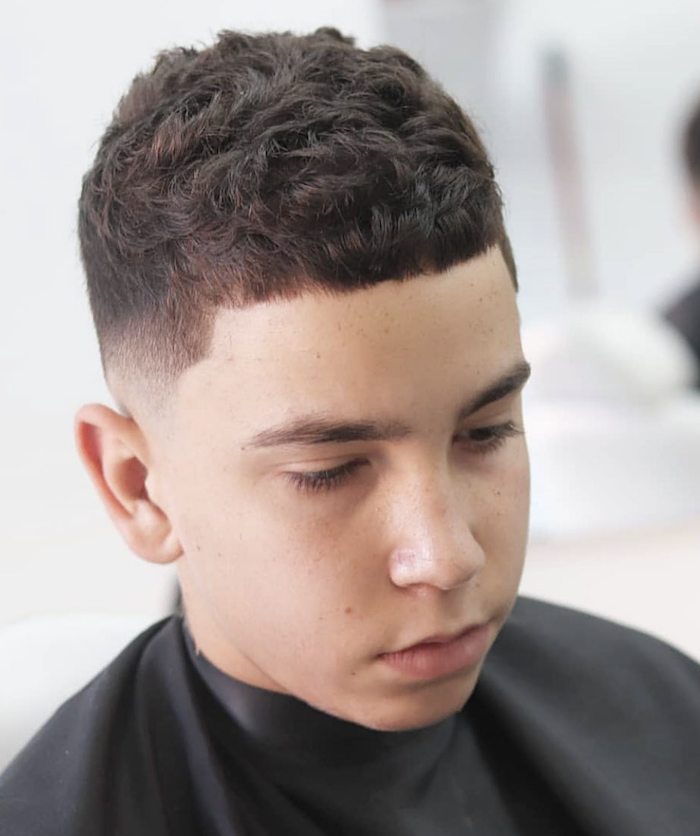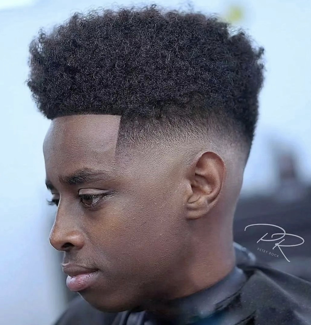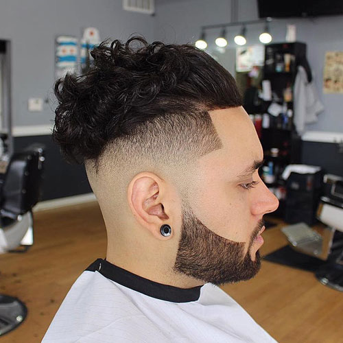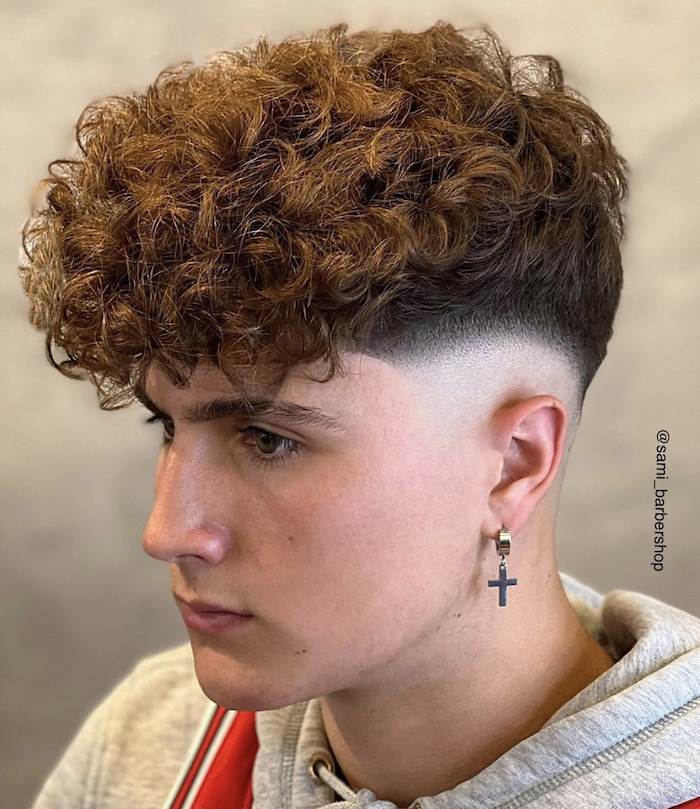 Mix a high fade haircut with curly hair on the top. Any naturally curly or wavy texture can benefit from trying this style. Thereโs a stylish appearance with a flawless blend between the short faded sides and the top.