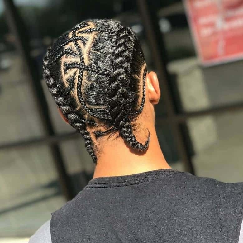 For guys with long hair who donโt want to slick it back, try twisting any curly hair texture and braiding the twists together.