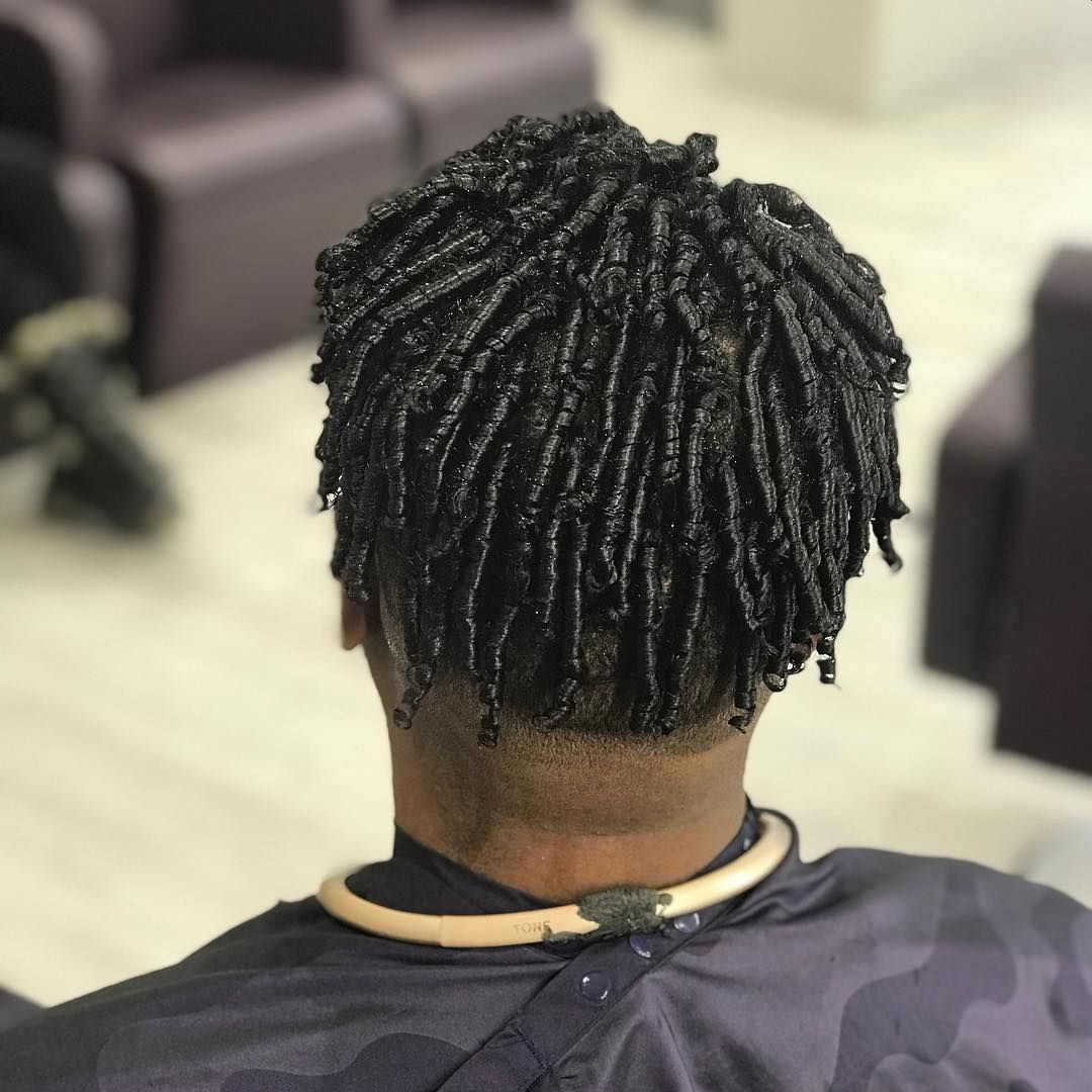 It looks great for hair with medium to tight curls and offers a unique and intricate look with twisted strands of curly hair that contrast with the fade on the sides and back.