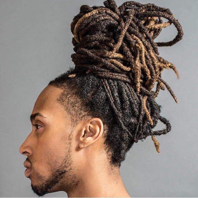 The infamous dreadlock bun looks charming for hair with well-established dreadlocks.