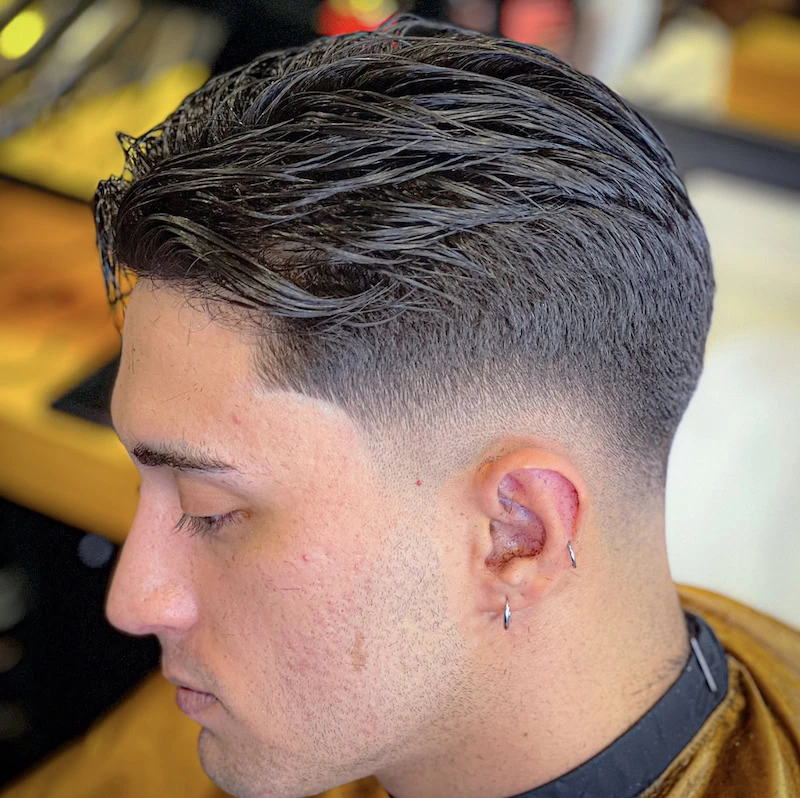 If you donโt mind spending a little bit more time on your hair, this type of fade haircut could be ideal for you. Comb over fade works with any type of fade but is most impactful with a low fade haircut or a mid-fade haircut. They can also emphasise an undercut fade nicely by showing off your different hair lengths.