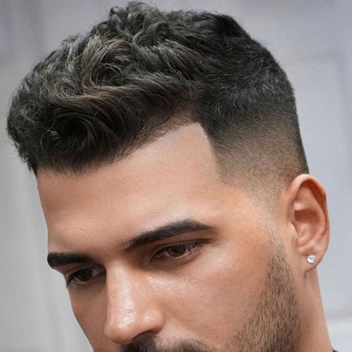 A crew cut is similar to the French crop, with shaved or tapered sides and long hair on the top of the head. However, a crew cut typically doesnโt have a fringe covering the forehead, instead, the hairline is pushed upwards like the quiff hairstyle. This is one of the best low-maintenance hairstyles for men with thin or thick hair who want minimal time in the bathroom, because all you need is a comb to keep it looking maintained.