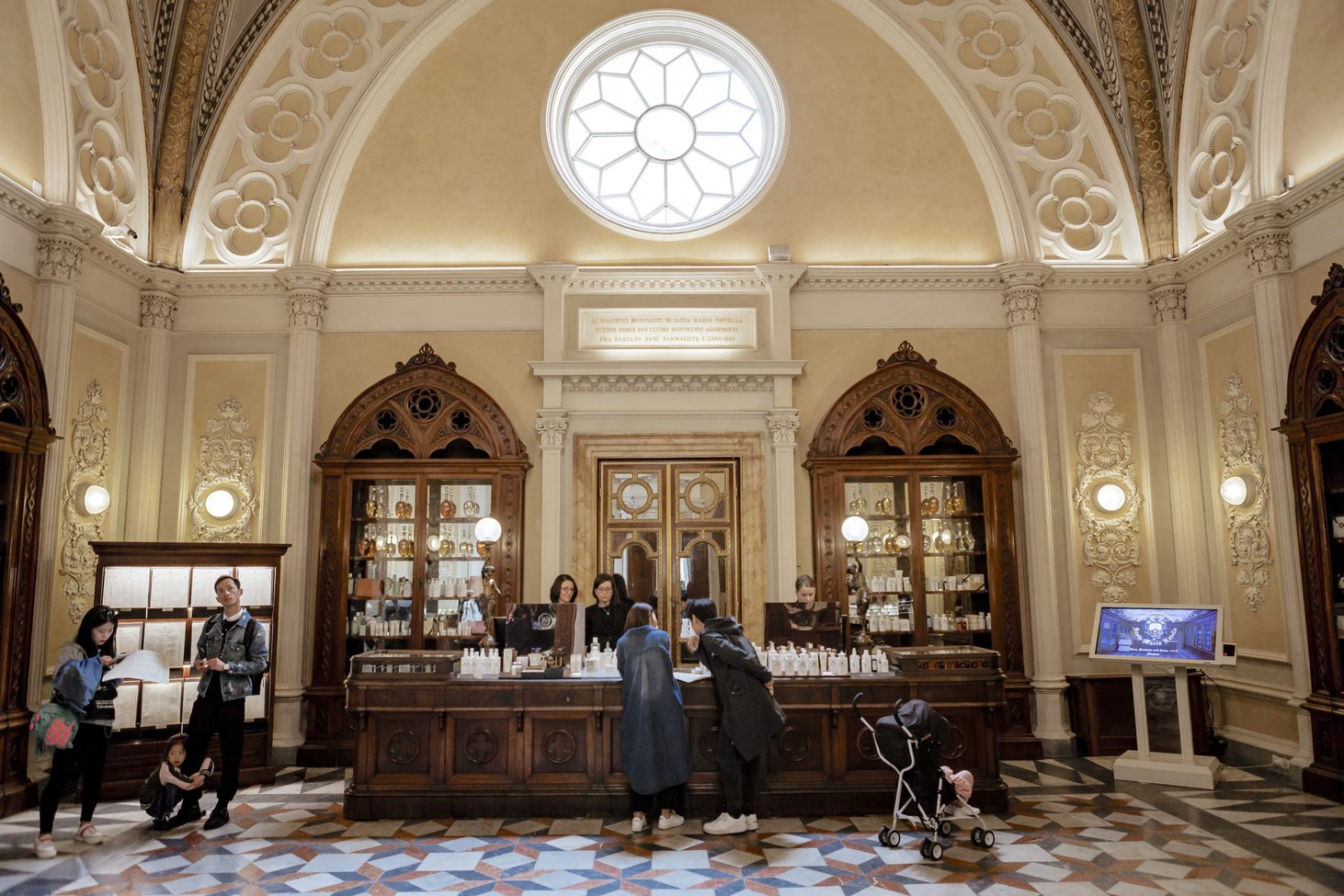 The boutique is actually just down the street from the Santa Maria Novella church, with an entrance adorned with colourful overgrowths of flowers creeping down from the ceiling. Youโll spot it from the crowd outside taking turns to quickly rush in and get a group photo.
