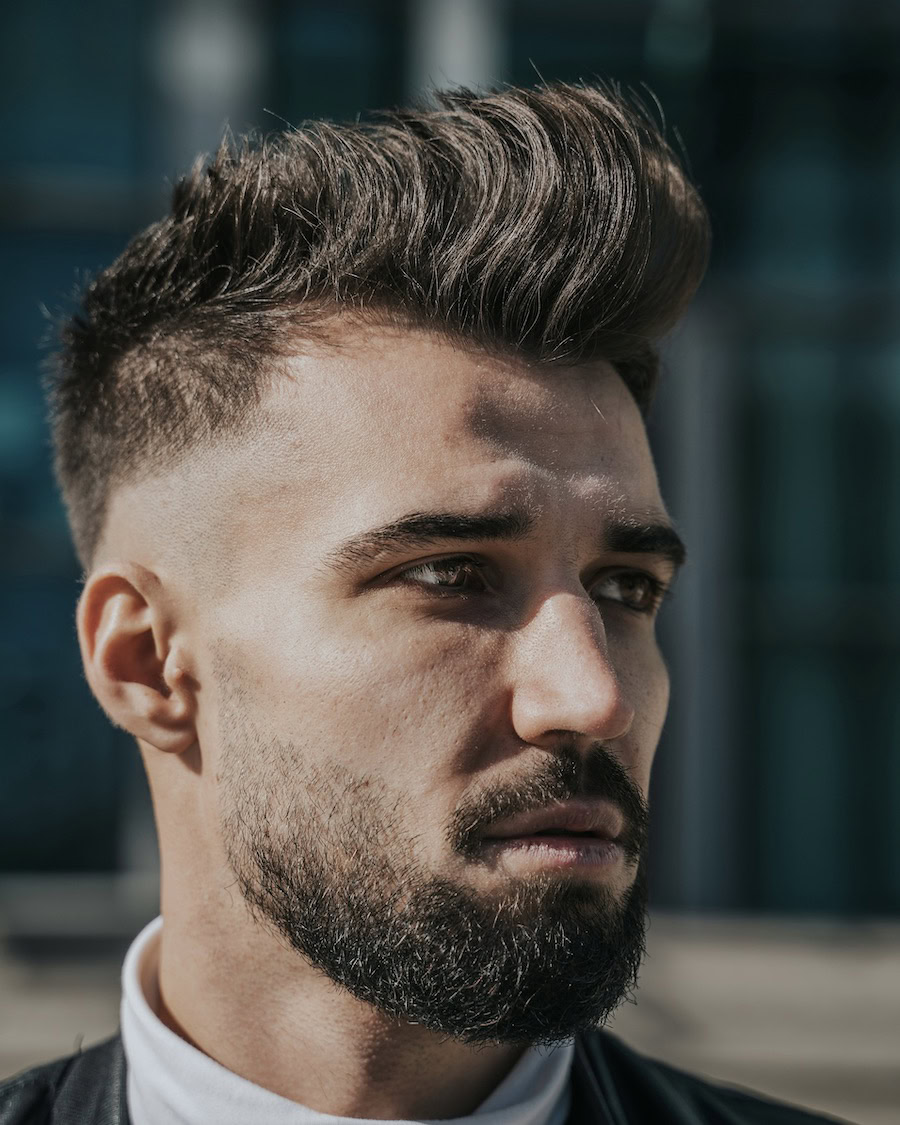 You’ll want to avoid the pompadour haircut; you just won’t be able to pull it off if you have a receding hairline or thinning hair at the front. In fact, any short haircut that pulls the hair backwards won’t work on you; instead, you’ll want a tight, fade cut on the sides, with a focus on blending the hair up into any thinning areas. This can help camouflage any lighter areas and make thinning look a bit more graceful rather than stick out with textured hair.
