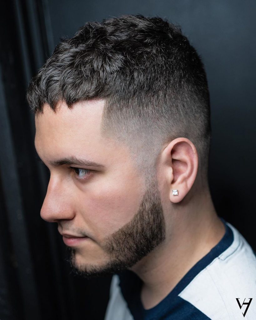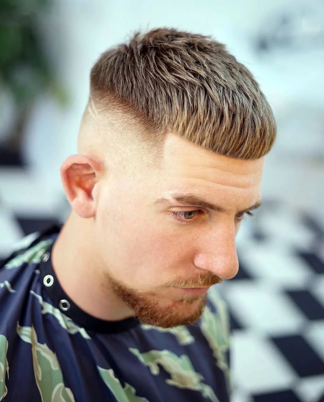 A messy French crop is much more appealing for blokes and more adaptable. It’s basically the classic French crop, but instead, it is styled, usually with wax, to create shapes and angles that contrast rather than blend.
