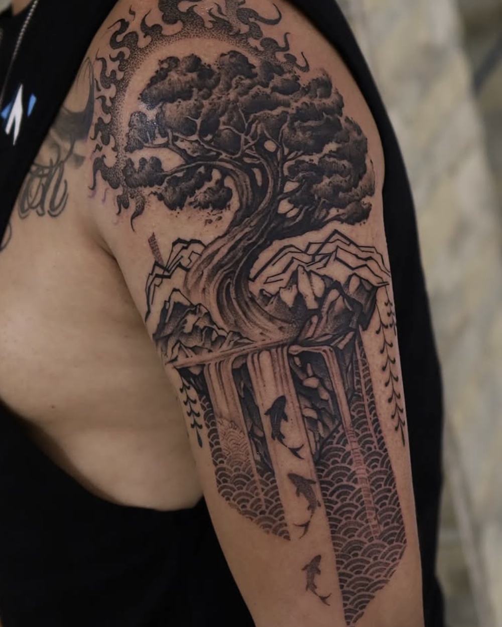 A tattoo like this works best in a prominent place, such as on your shoulder, so that the artwork can be seen and appreciated.