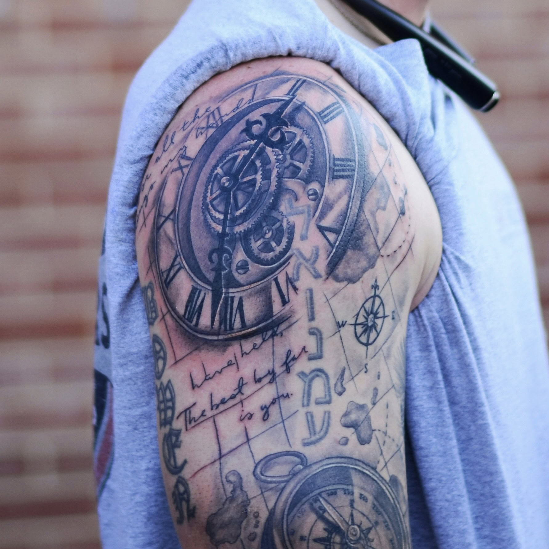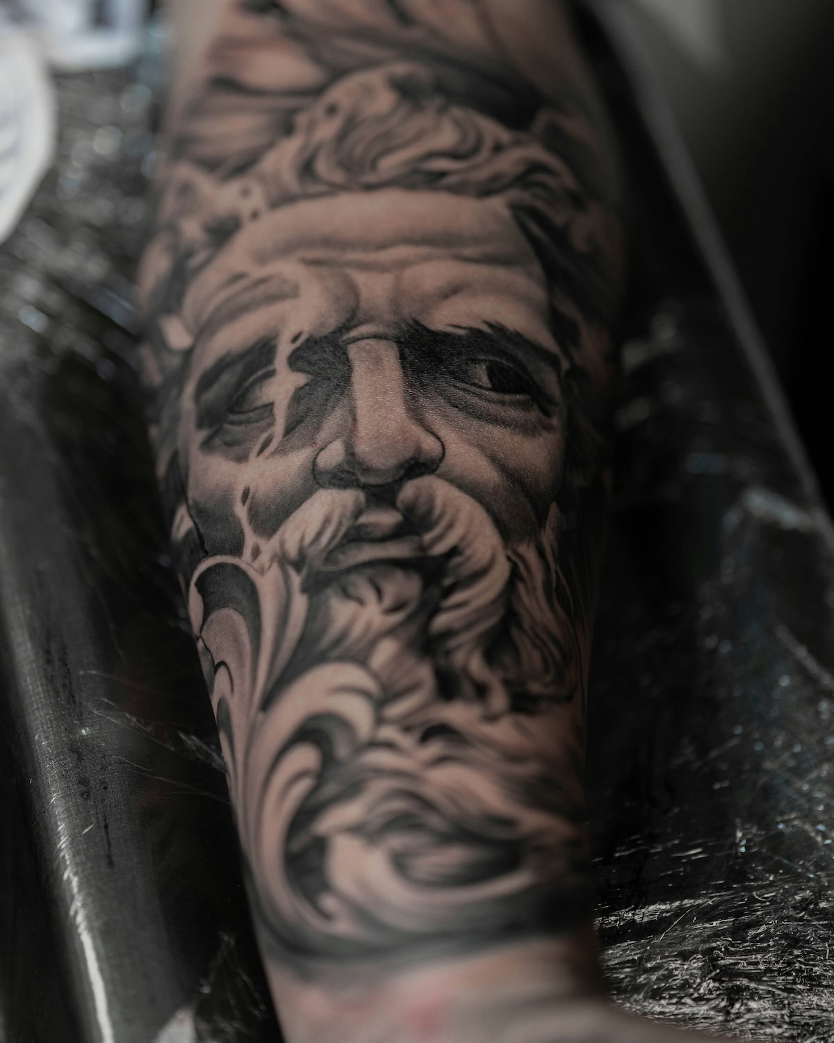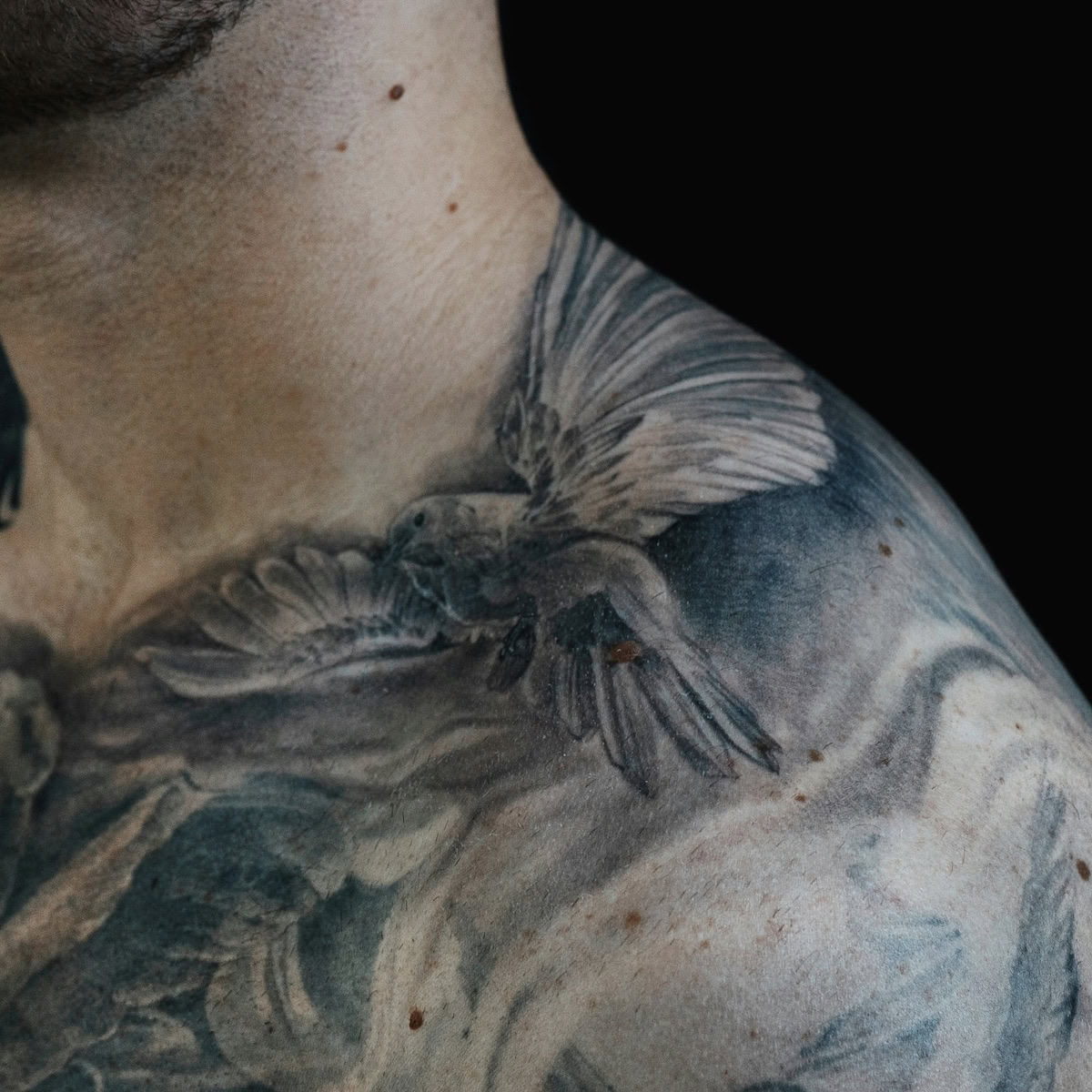 Photorealistic tattoos can be any size and on any part of your body, but are usually favoured for larger tattoos like sleeves, shoulders, and back tattoos.