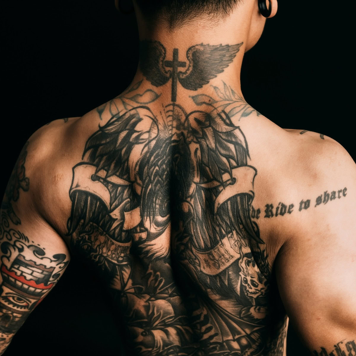 Just like the chest and stomach, the back is a popular canvas for tattoo art thanks to its size and the scale of tattoos that you can achieve when it’s tattooed.