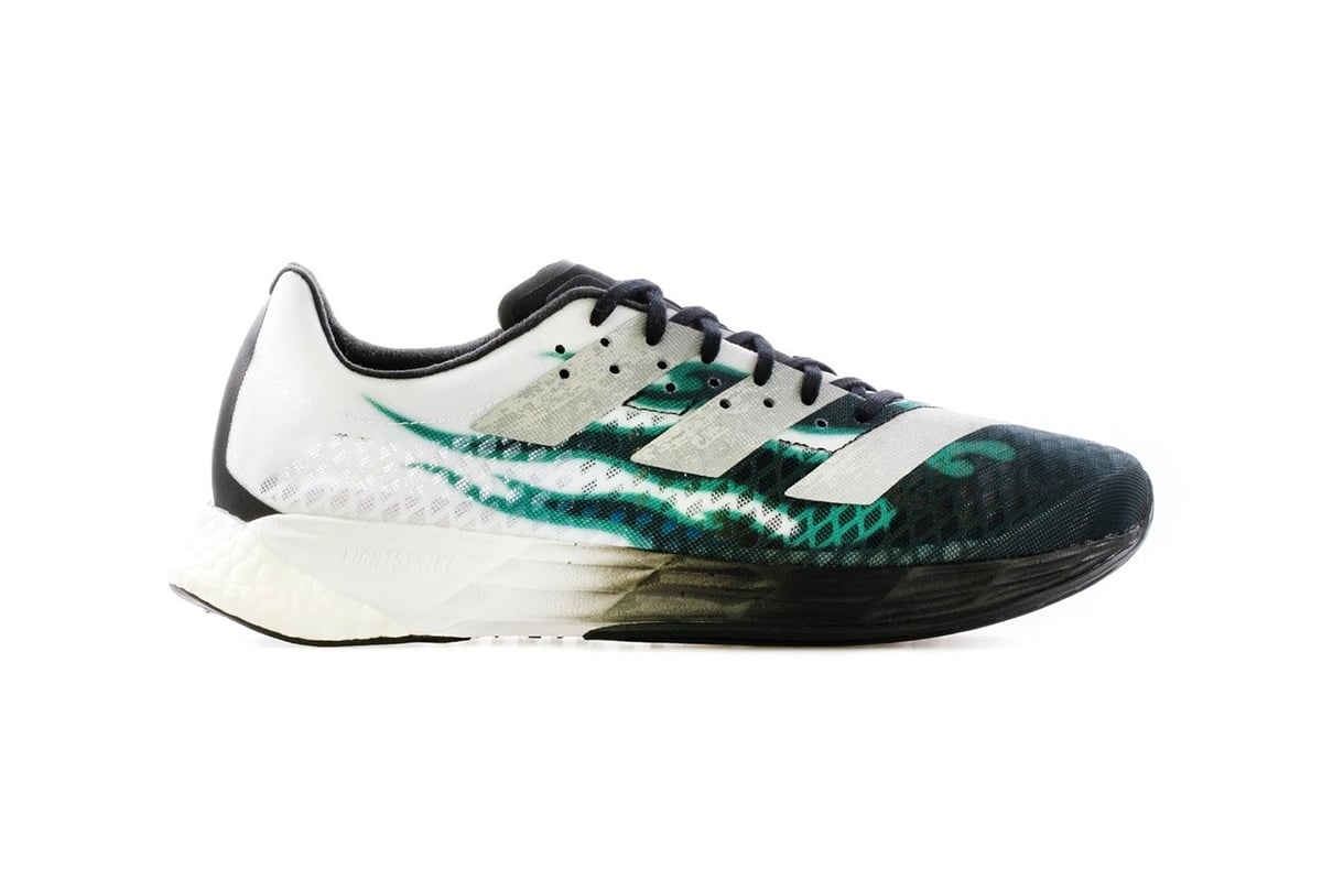 Released to align with the internationally lauded Boston Marathon, Adidasโ latest performance runner will leave a trail of green flames in your wake. Thatโs right, the new Adidas Consortium ADIZERO Pro RNRS High in the White/Green colourway features a set of black and green flames across its flanks. You want to look good when youโre running fast, and now you can do both thanks to the construction of the sole, which features a Carbitex carbon fibre plate inserted into a firm, impact absorbant, BOOST heel and a Lightstrike system to help your foot accelerate. You might have missed the Boston Marathon, but you can still cop these.