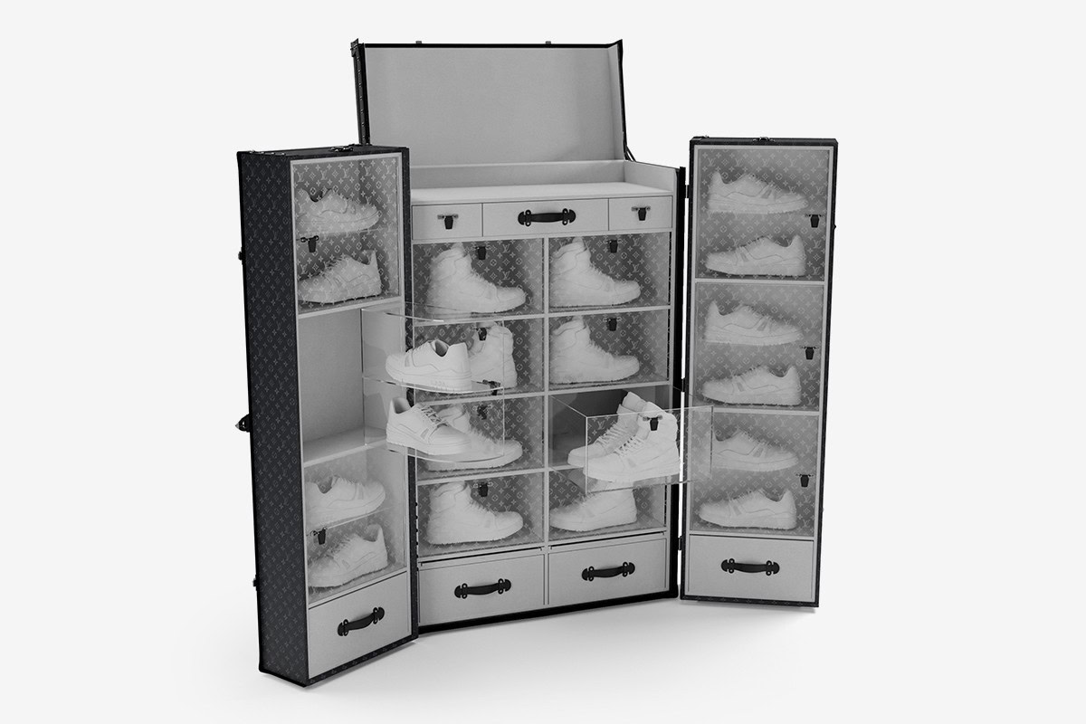 Set to be officially unveiled during the Houseโs special Savoir-Faire event on December 3rd in Miami Design Districtโs Paradise Plaza, the hard-sided cabinet has room to store at least six pairs of low-tops measuring up to a size 13 and eight pairs of high-tops measuring up to a size 12.