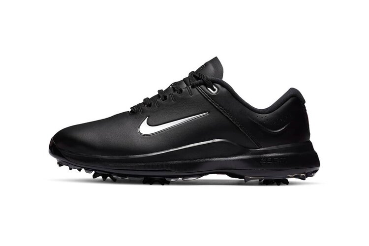 The Air Zoom Tiger Woods โ20 feature a closer dress-shoe inspired aesthetic, sleek with synthetic leather on an all-black or all-white upper thatโs almost uniform save from a contrasting Swoosh. Taking care of comfort is a foam-padded ring and tongue cradle for superior ankle support, while the integrated Zoom Air unit provides a snappy response and more flexibility.