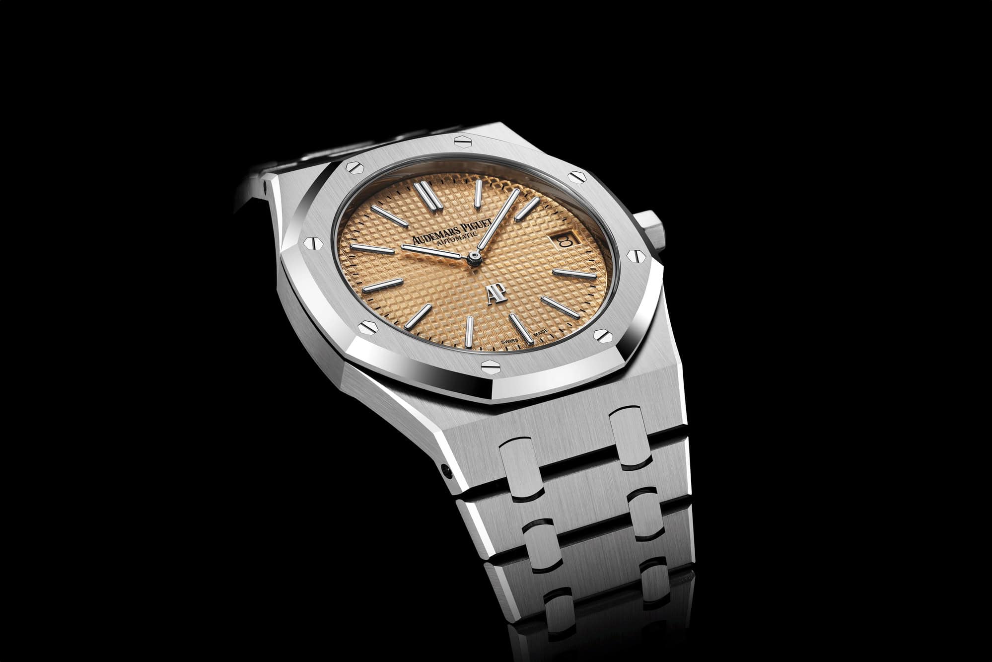 The โSalmon dialโ, as it was aptly named at SIHH 2019, receives matching white gold hands and indices and houses APโs Cal. 2121 with a 40-hour power reserve. Under different light, the dial appears to morph from yellow to brown and towards a subtle goldy pink hue. Itโs a beauty to observe and even nicer to wear, gracing the wrist with a wonderful weight, without being at all ostentatious like itโs yellow gold cousin.