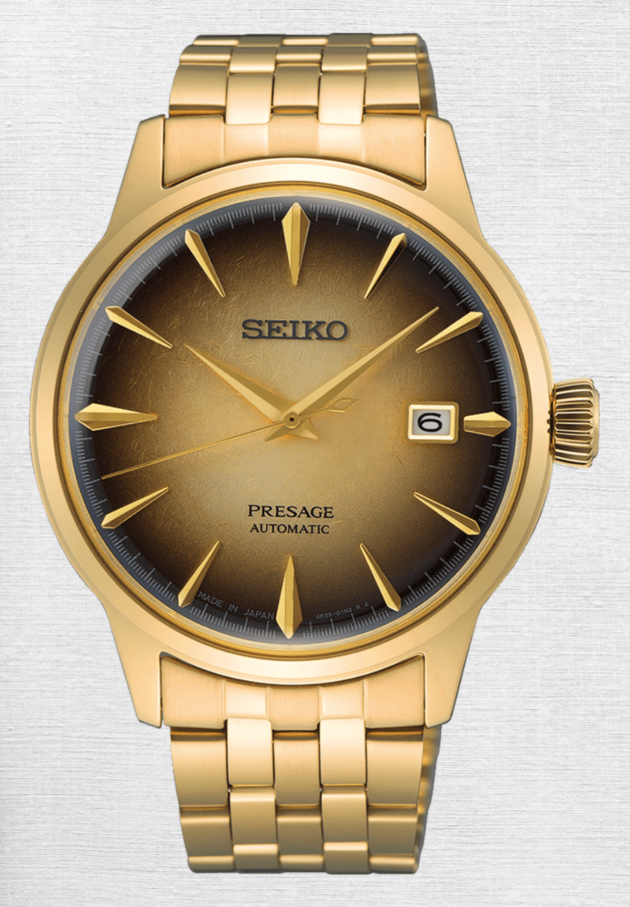 The Seiko SRPK48 comes from a sub-collection within the Presage line known as the โCocktail Timeโ range, with this reference inspired by the golden volumes of the Half and Half beer cocktail. Itโs got plenty of presence on the wrist thanks to its gold-tone stainless steel case and bracelet, while the texture of the dial. istruly mesmerising.