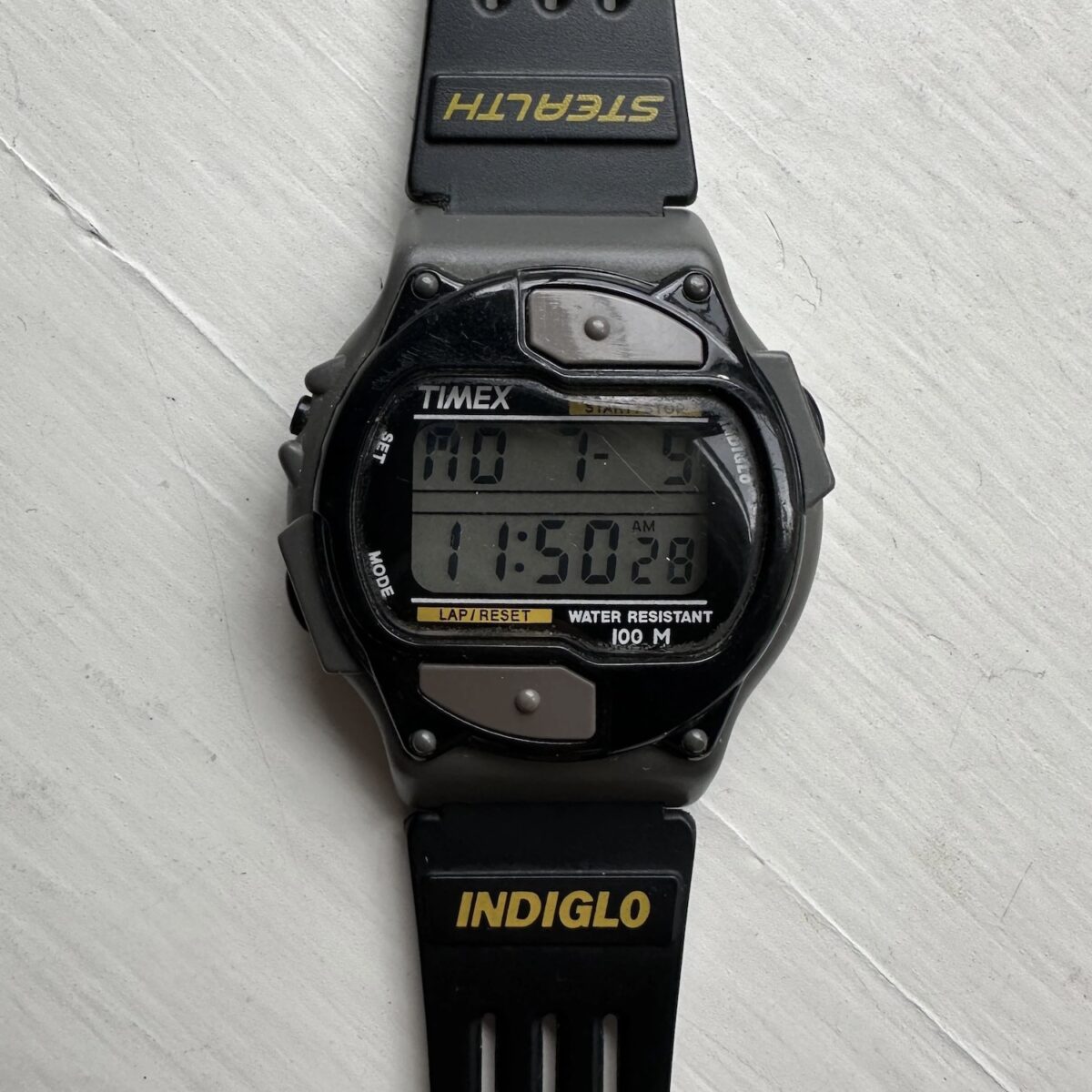 Accurate, anonymous, and perfect for timing police response times, it’s got all the functions you’d expect to find on a digital watch from the mid-90s: the day, date, second timezone, stopwatch, Indiglo display light, alarm, 100 meres of water resistance, and more.