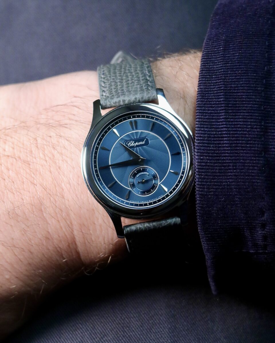 This latest 1860 from Chopad is L.U.C watchmaking at its very best: unpretentious, understated, and devastatingly beautiful on the wrist. Created to celebrate the 30th anniversary of the collection, it’s crafted from Chopard’s proprietary Lucent Steel, measures 36.5mm in diameter (8.2mm thick), and boasts a hand-guillochรฉ blue dial that’s mesmerising in the right light.